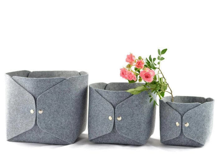 Storage basket, high small gray felt storage bin, felt bin, basket ...
