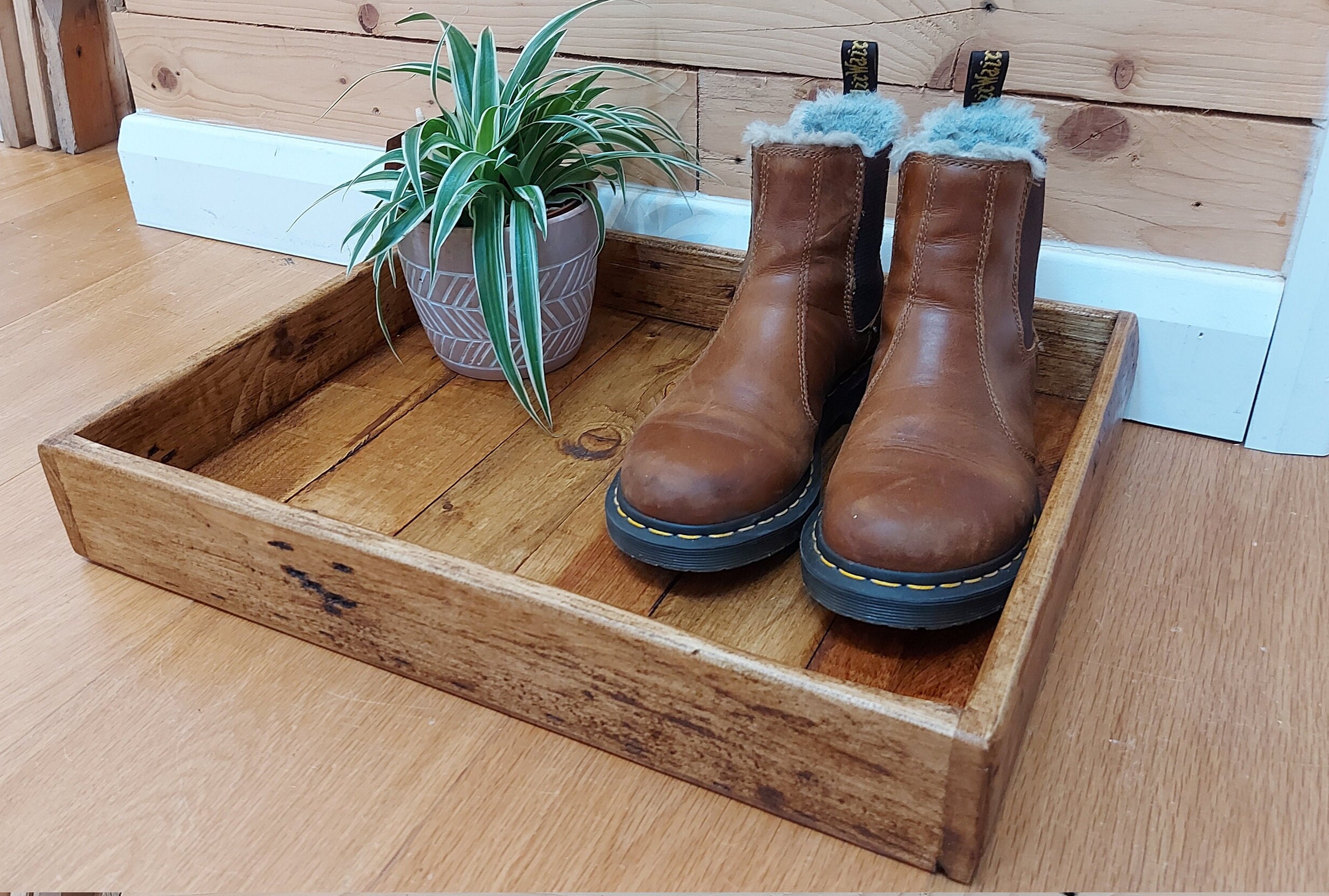Rustic Reclaimed Wooden Boot Tray / Plant Tray / Indoor Plant Stand...