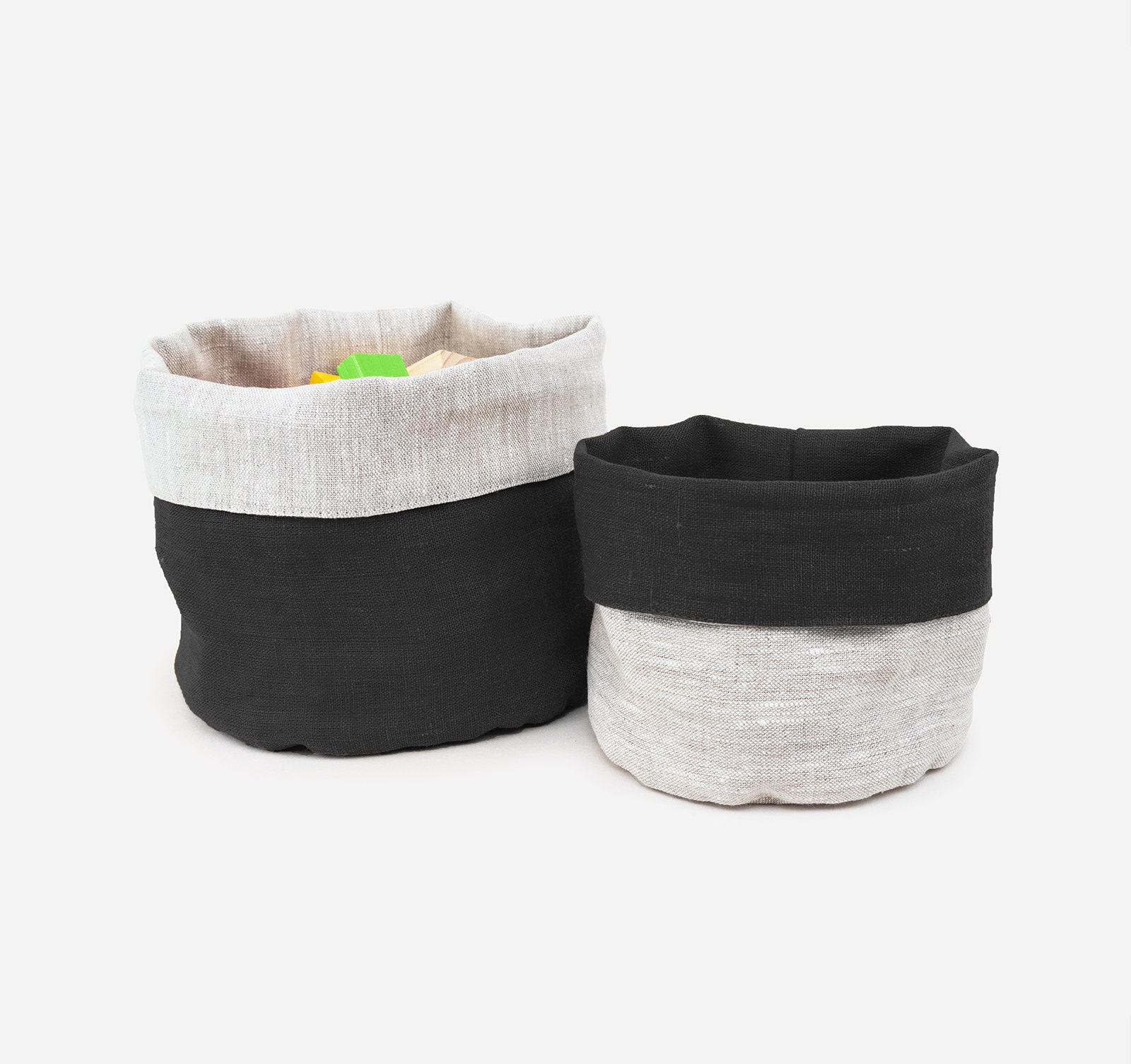 Eco friendly linen storage basket, reversible storage bin in Black and Beige. Available in 2 sizes: ...