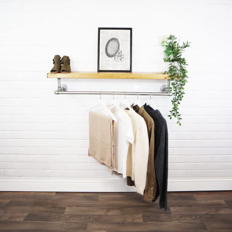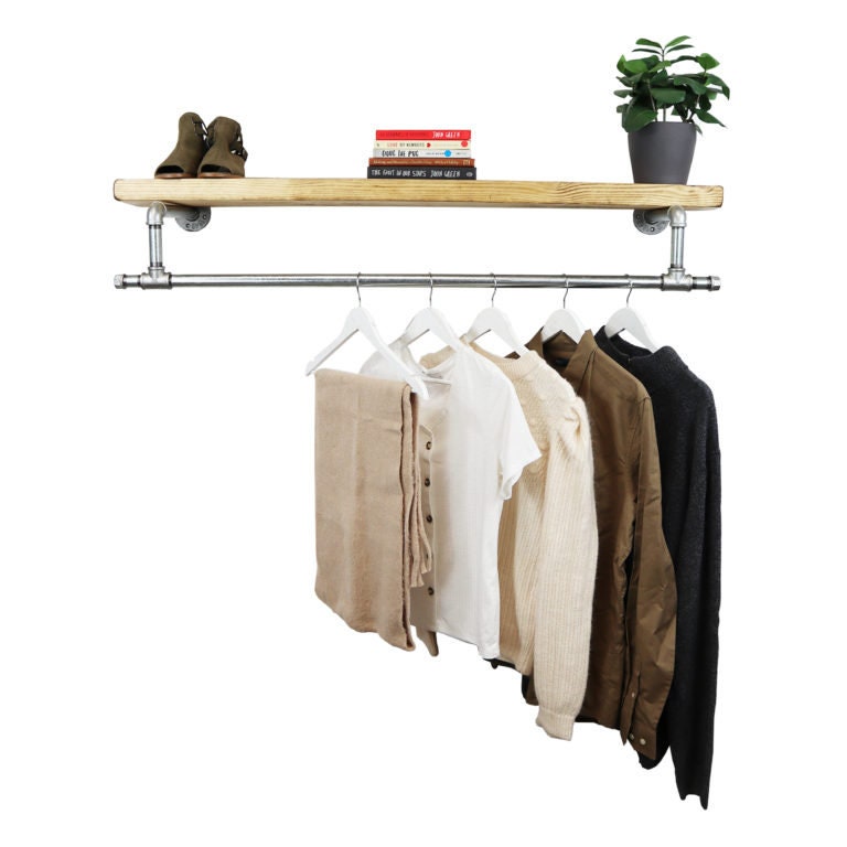 INDUSTRIAL RAW STEEL MOUNTED CLOTHING RAIL WITH SHELF Fed up with hiding your beautiful clothes away...
