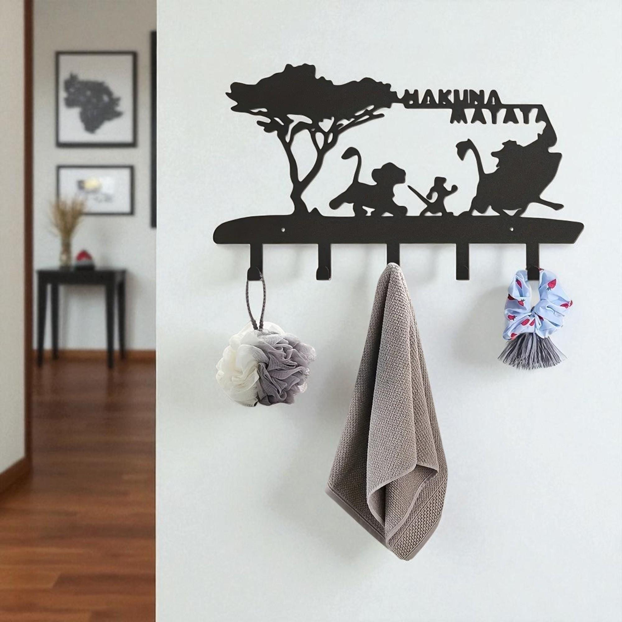 Wall Key Hooks - Black Metal Key Holder with 5 Hooks, Wall Mounted ...