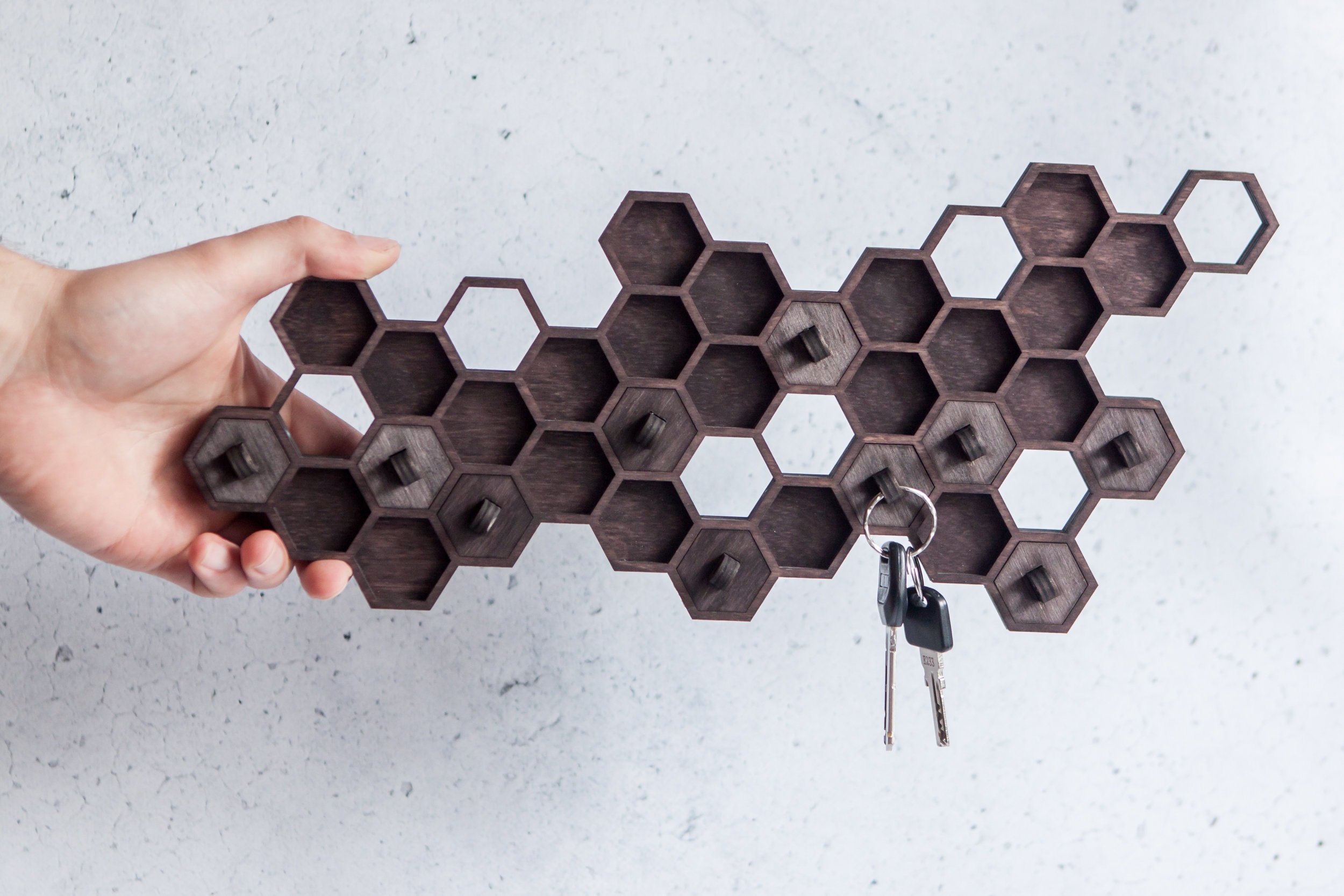 Wood honeycomb keychain holder, Hexagon key wall holder, Honeycomb ...