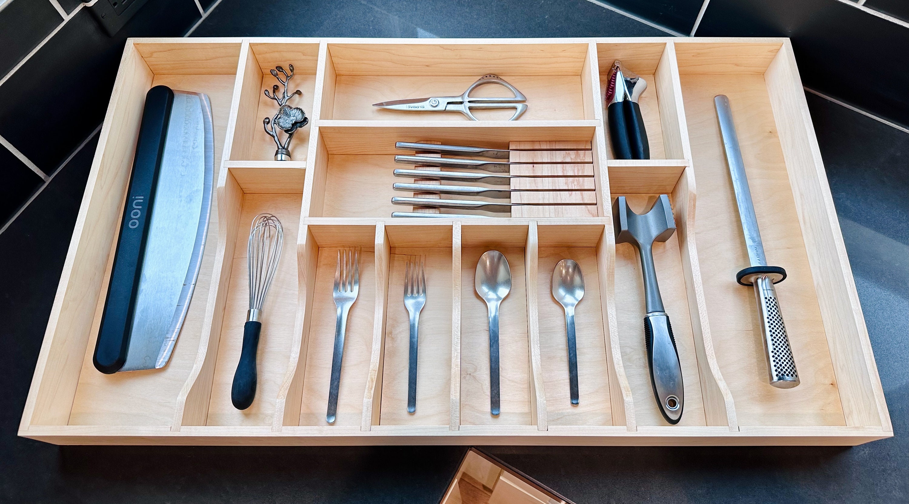 Custom Kitchen Drawer Organizer Made from Solid Maple