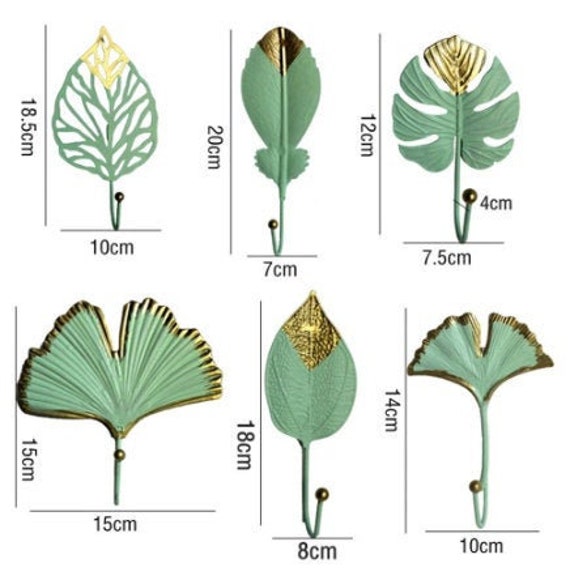 Leaf Wall Hooks (Set of 2; Colour- Aqua (mint) blue with gold accents) Currently have a few differen...