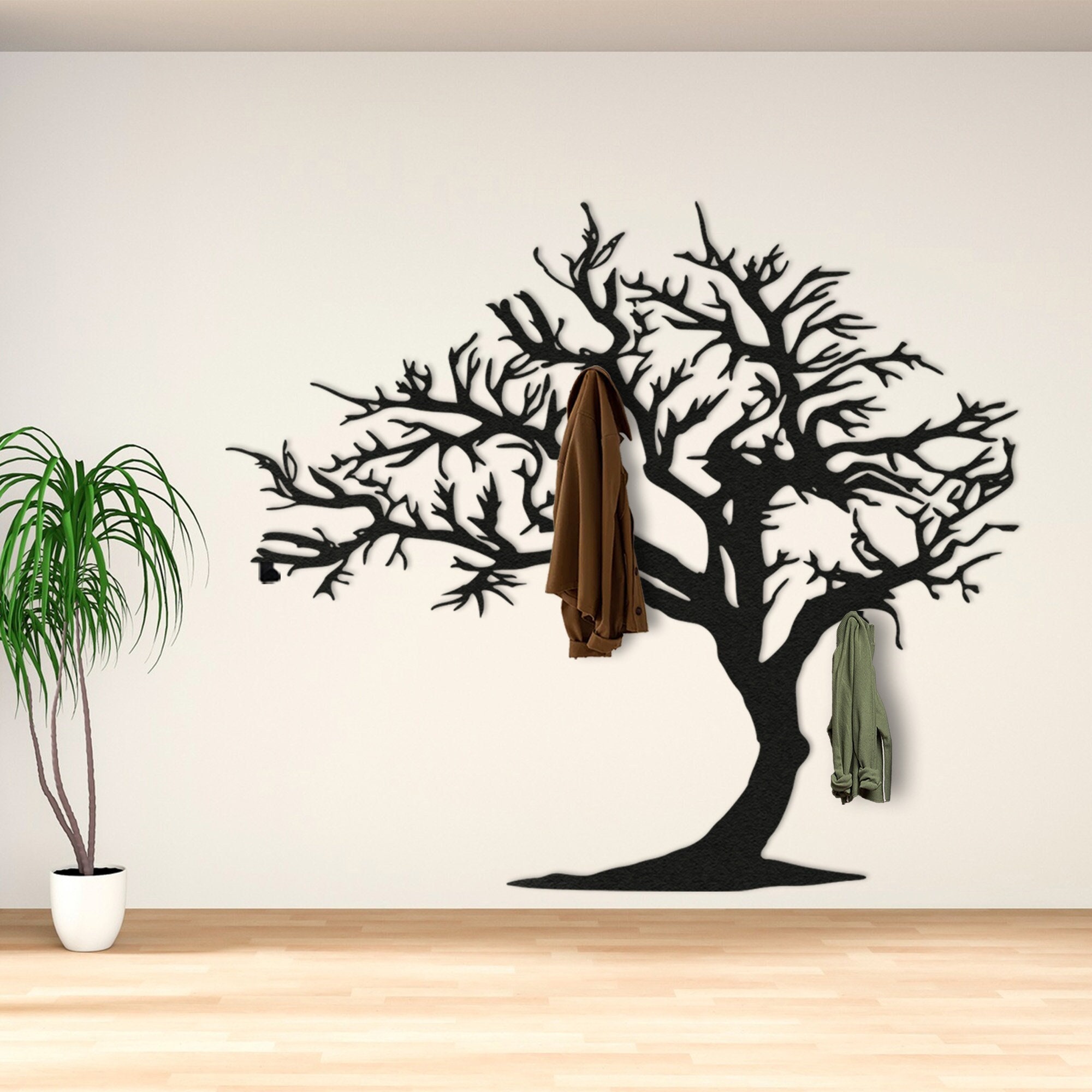 Large Tree Coat Rack Wall Mount, Metal Coat Rack, Metal Wall Hanger, Modern Entryway Organizer, Wall...