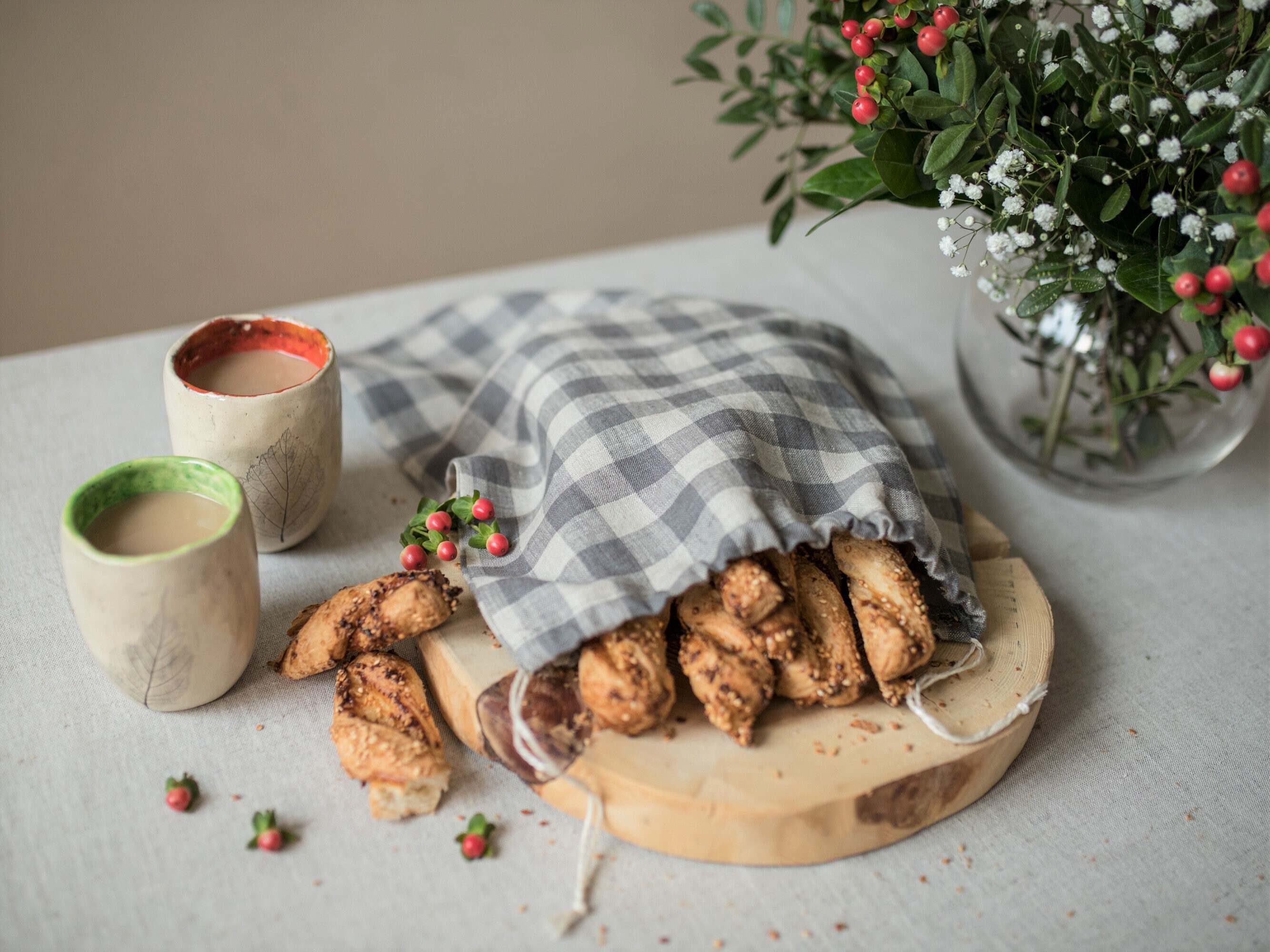 Handmade wicker basket meant for storing bread and pastries. Fully lined with a high-quality linen/c...