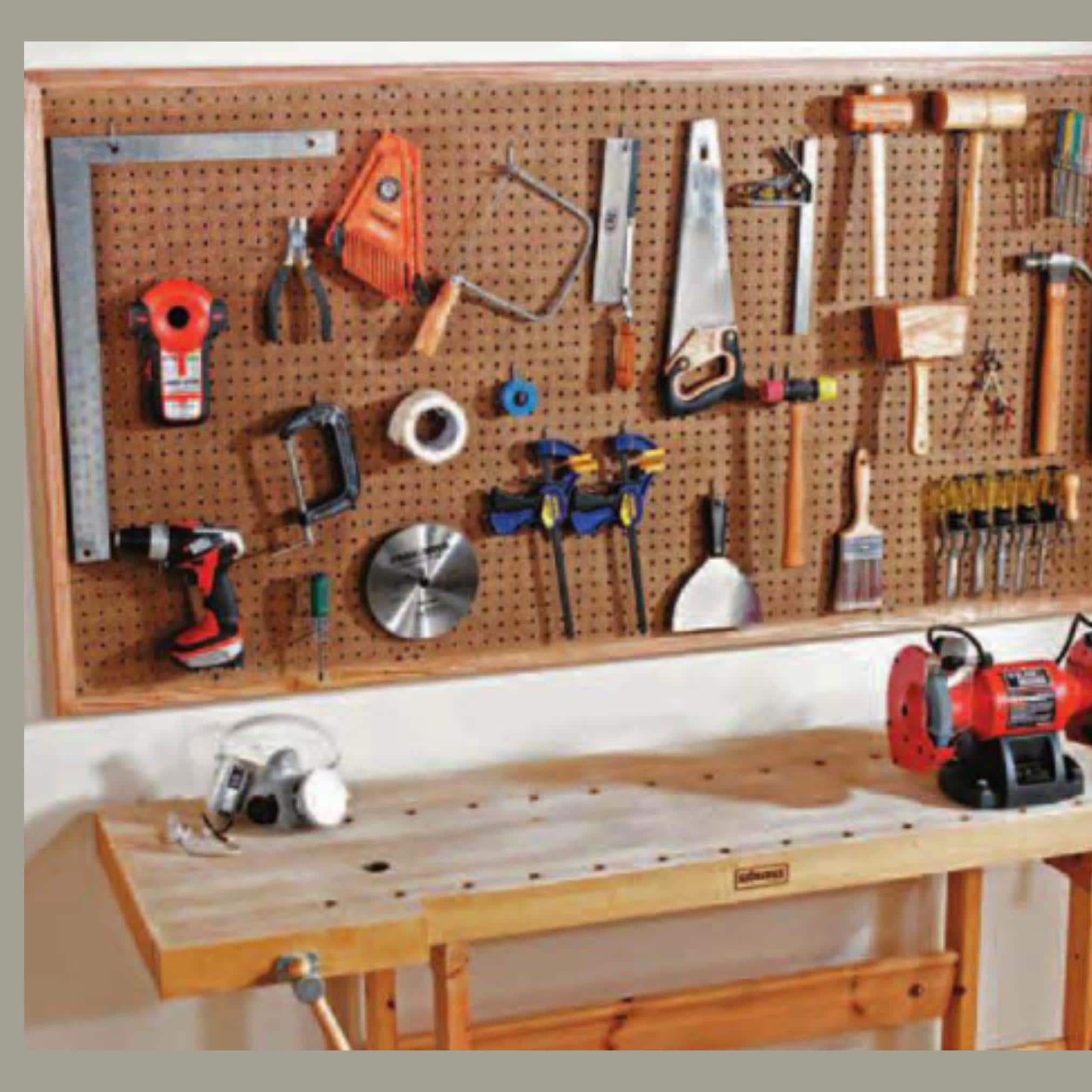 DIY Custom Pegboard Garage Wall Hanging Tool Storage Power Tool Org...