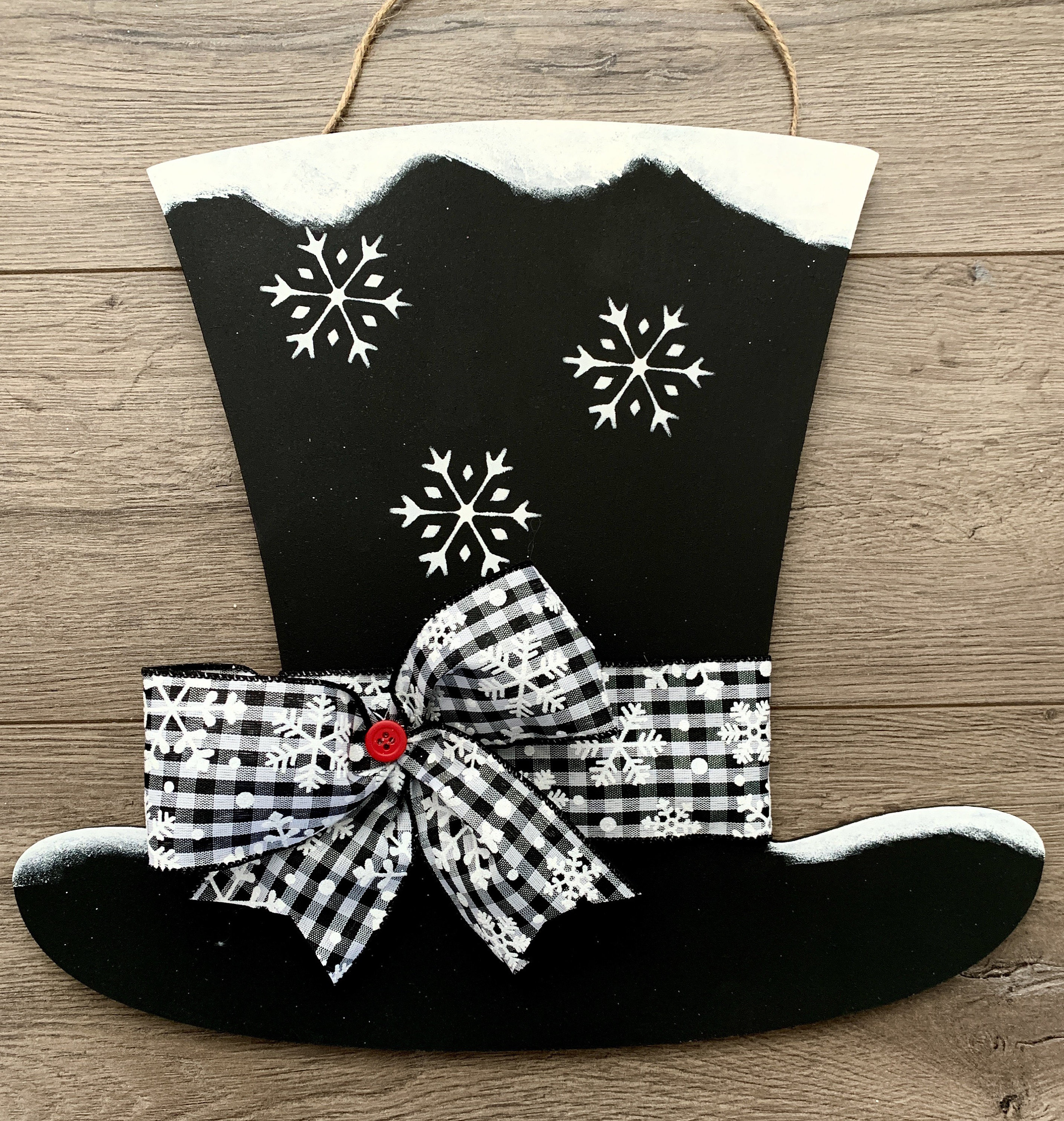 Snowman Hat Door Hanger - Winter Door Hanger - Snowman Hat Door Dec...
