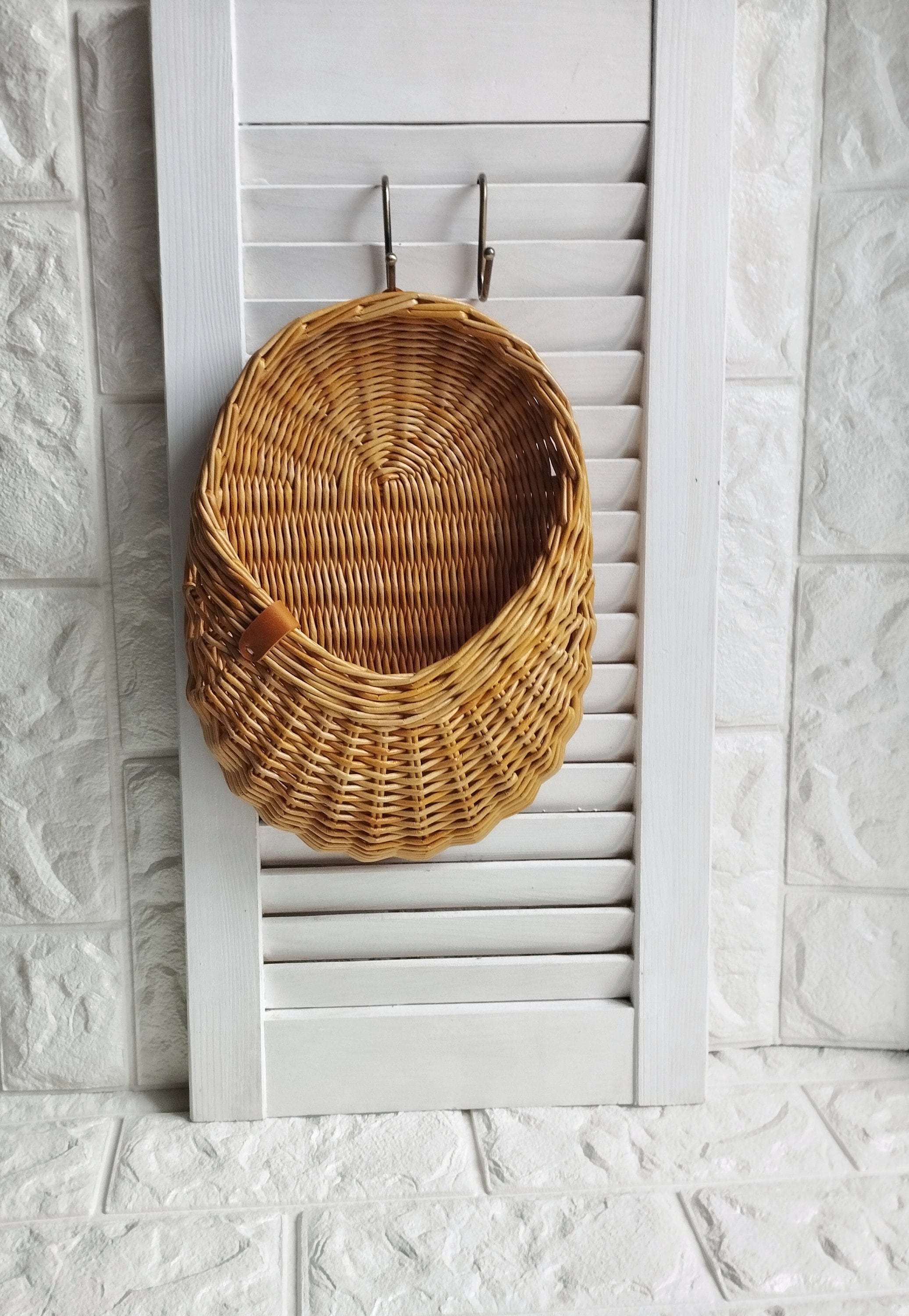 Basket on the door. Oval flower basket.Front door decoration. Straw...