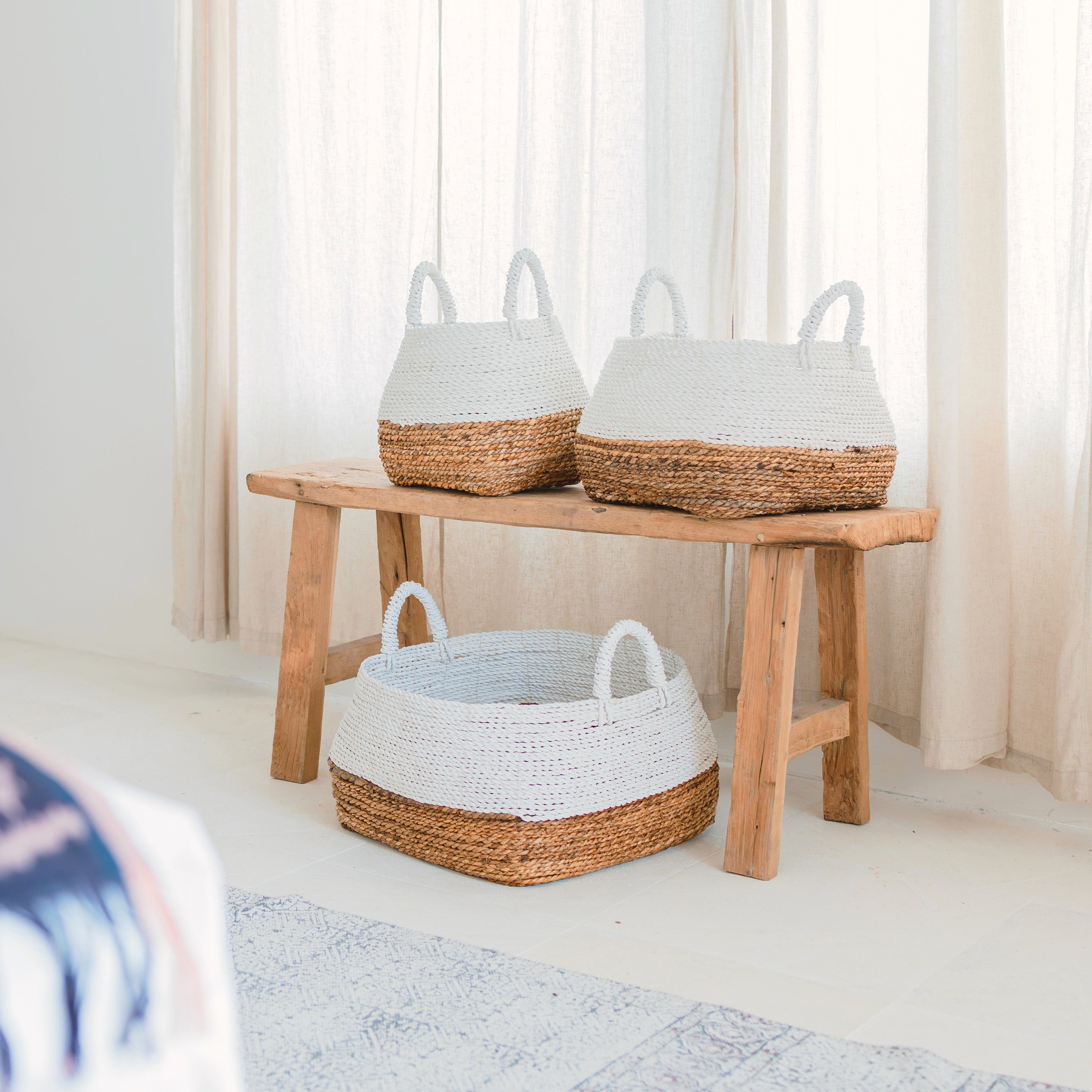 Woven Storage Basket White - Boho Decorative Basket - Square Laundr...
