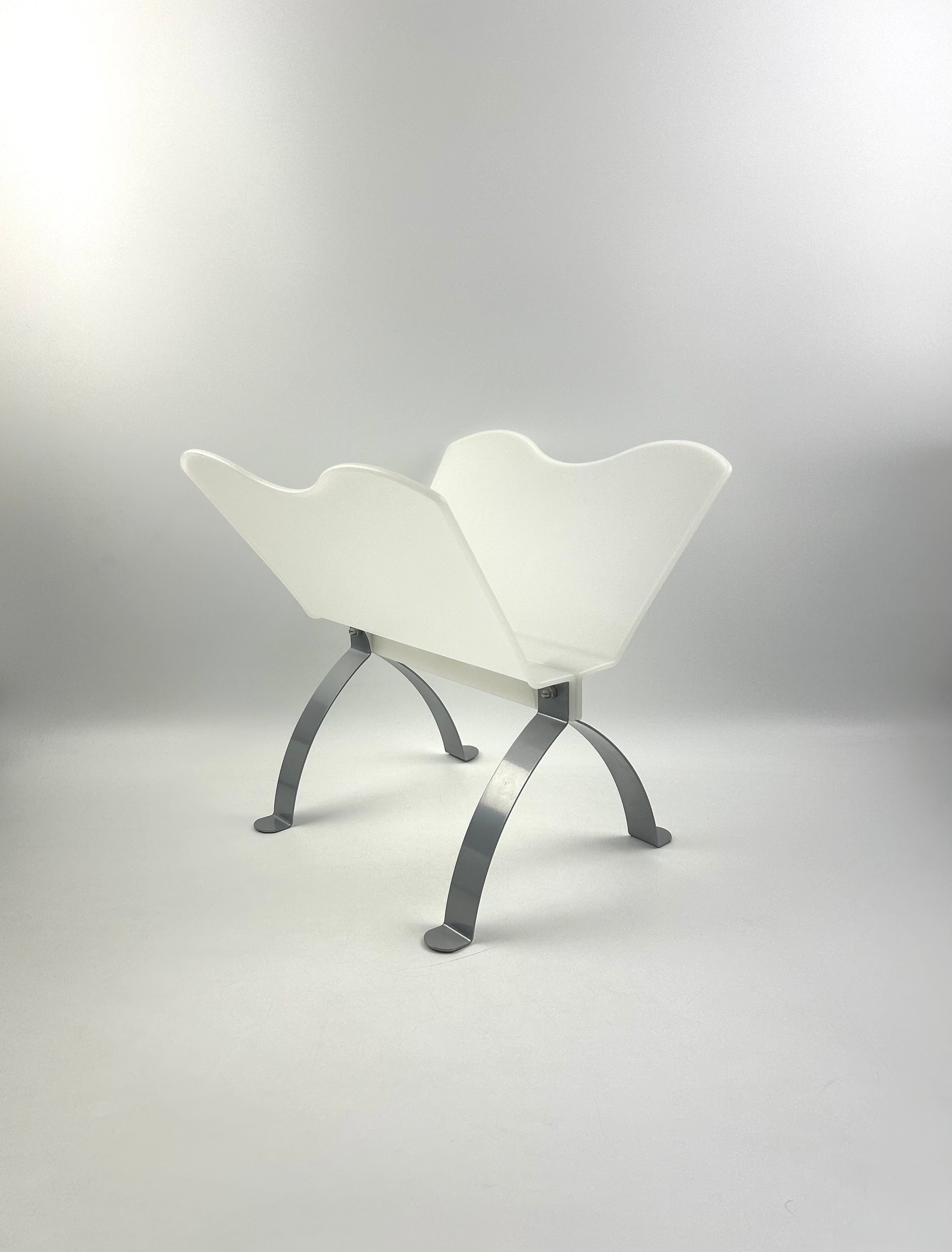 Vintage white plastic magazine rack with brushed aluminum legs by Per-Ivar-Ledang for Ikea from 1995...
