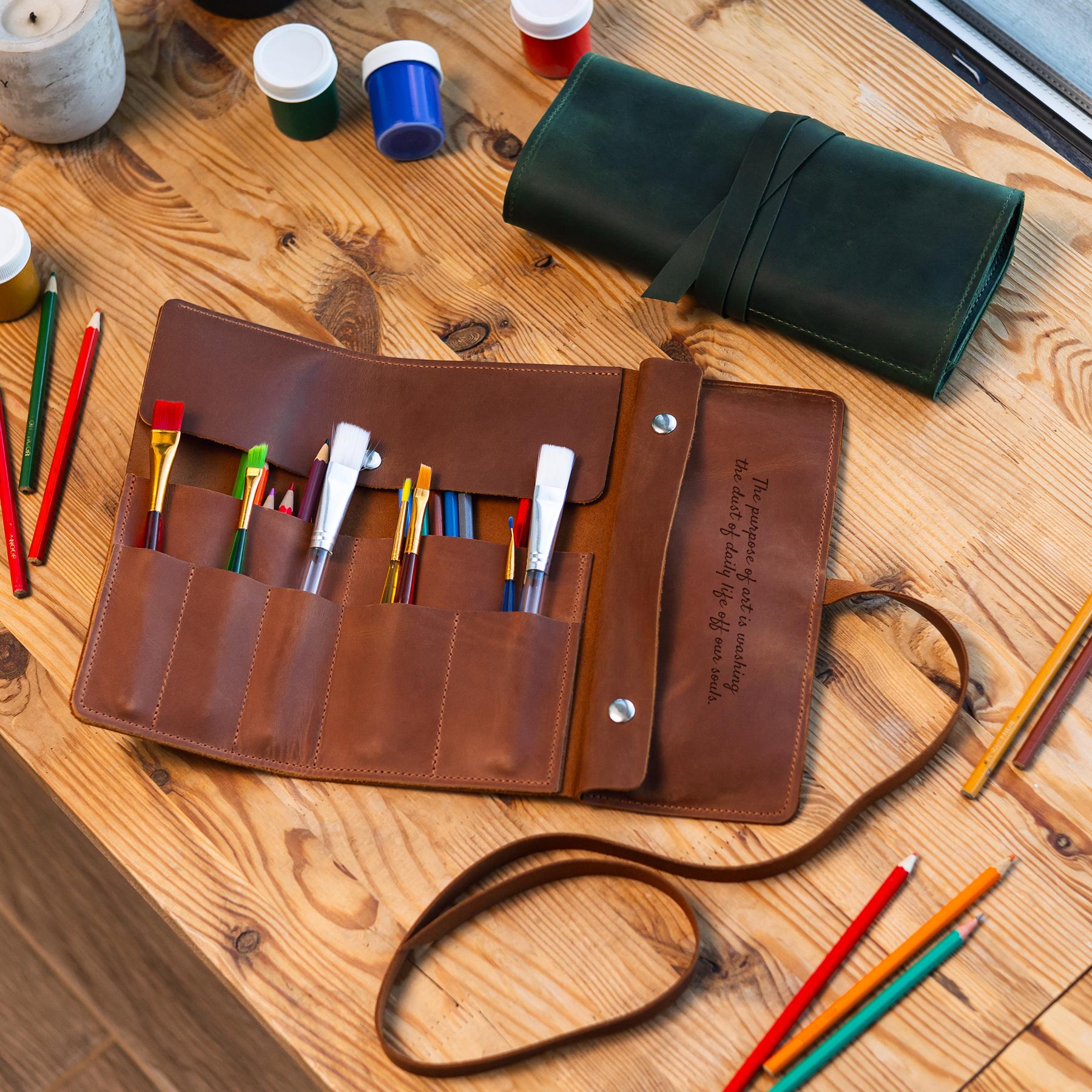 Artist pencil case,Leather pencil case,Customized paintbrush case,L...