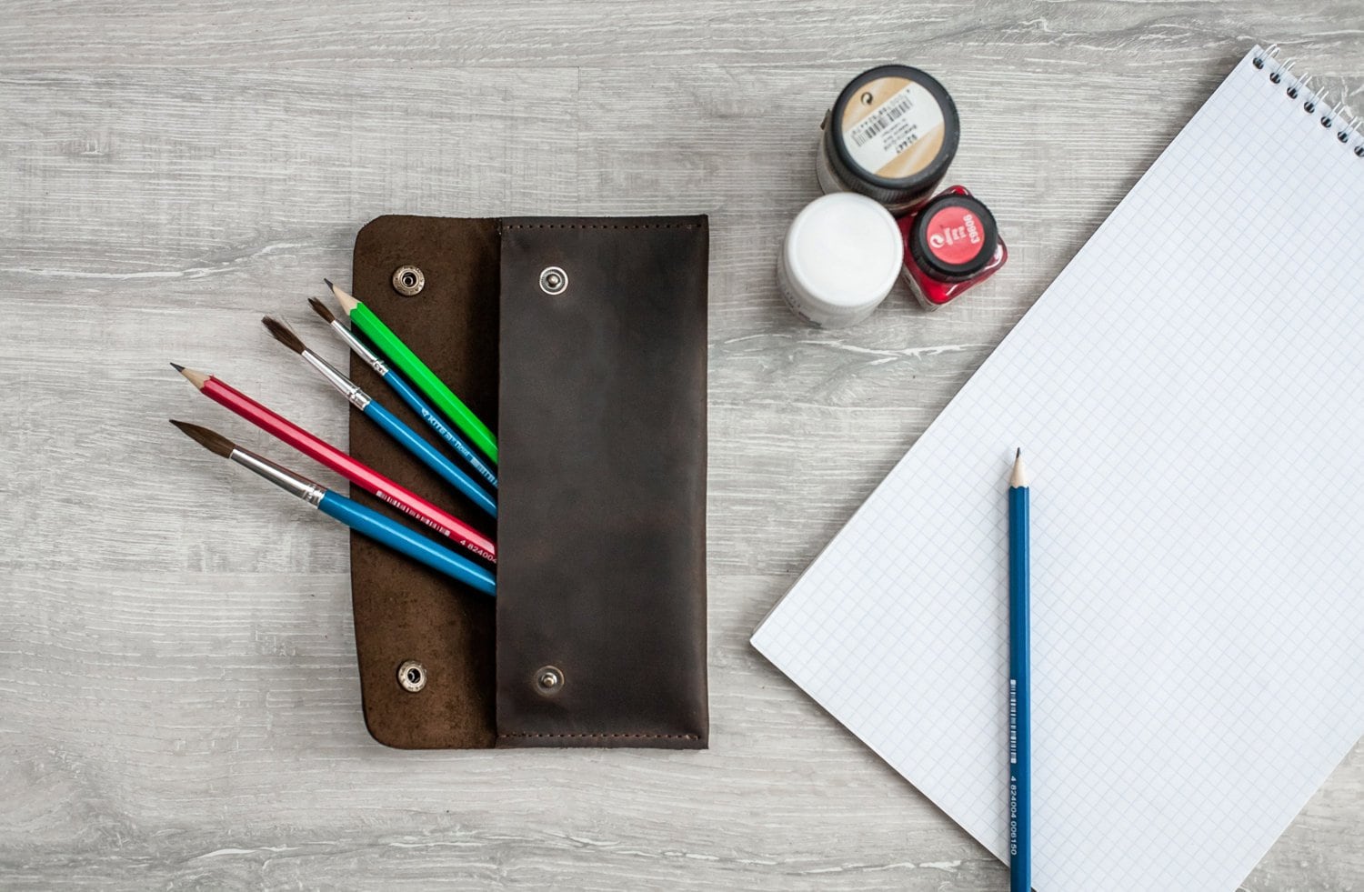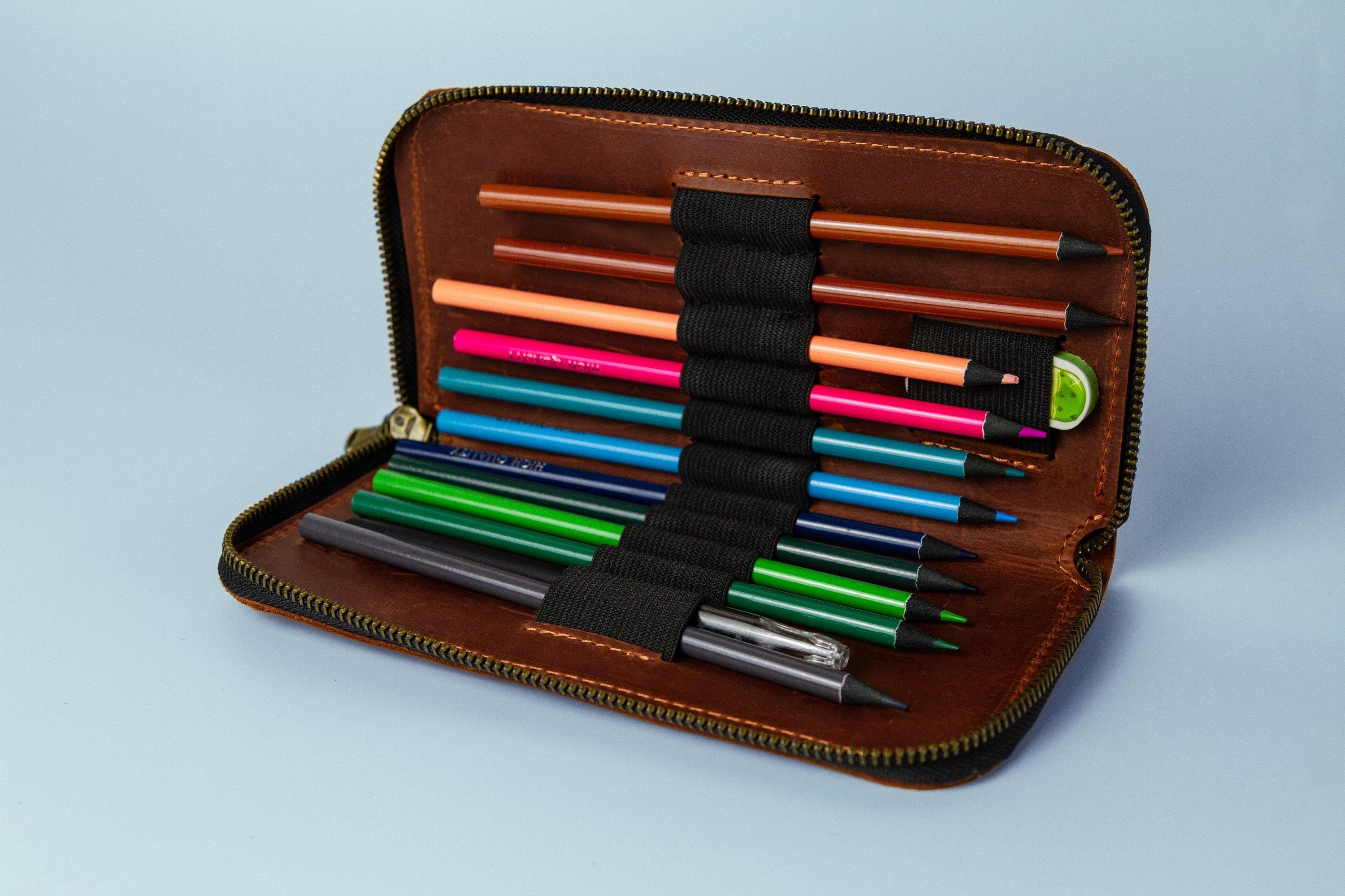 "pencil case. Pens and pencils leak on your stuff? With a hand-crafted leather pencil case it w...