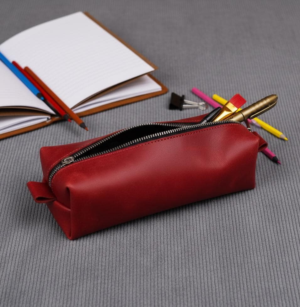 Leather pencil case, Leather pen pouch,Leather stationery case,Leat...