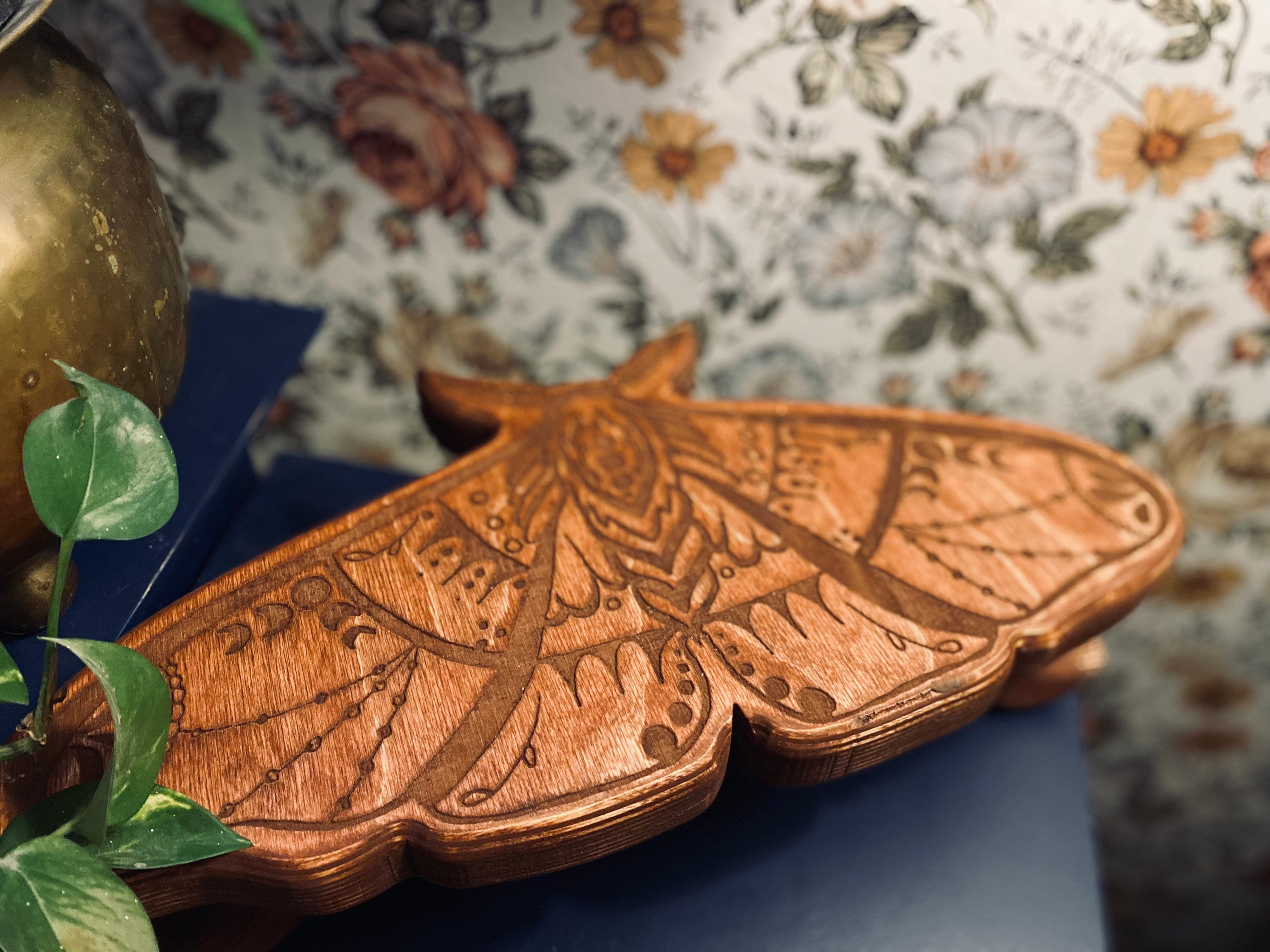 "This handmade and laser engraved moth stand is your next piece of decor. Perfect for displayin...