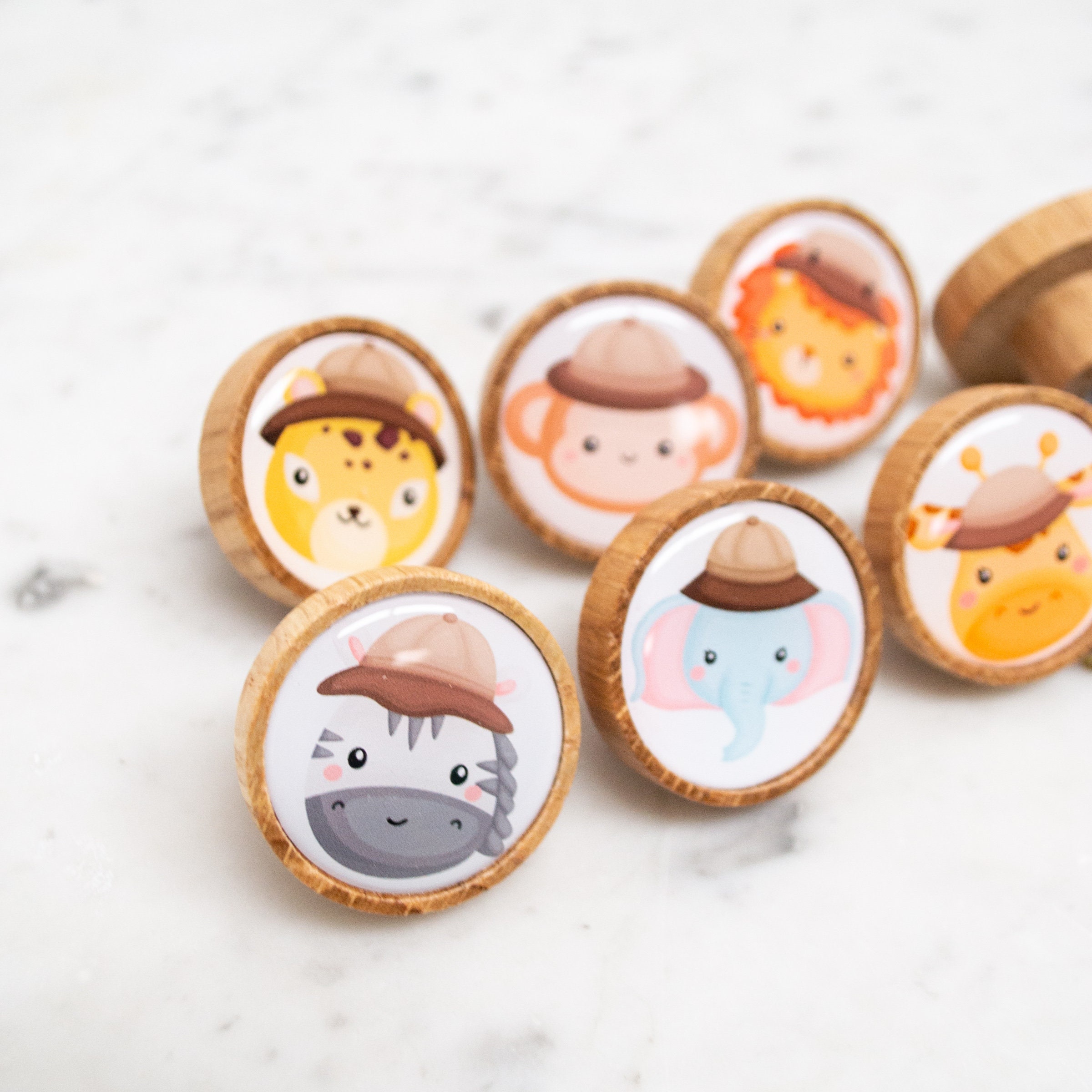 Childrens safari animal wall hook, oak coat hooks or towel hook, nu...