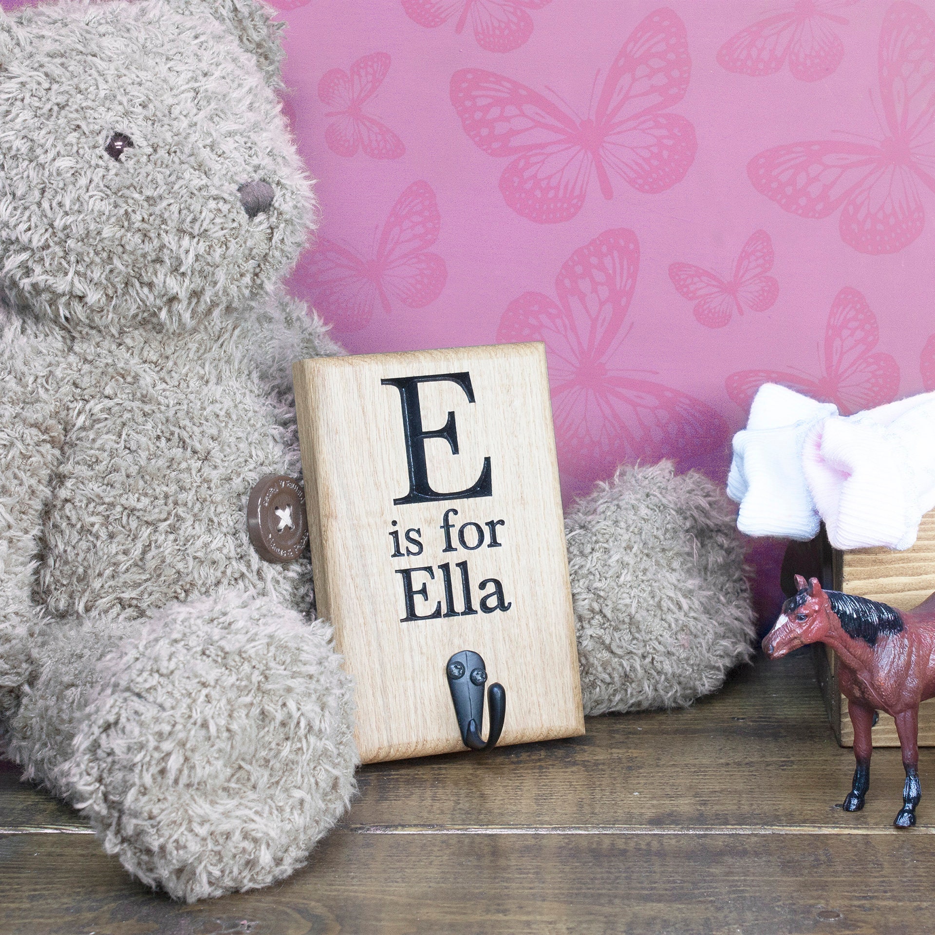 Kids Personalised Oak Coat Hooks, Personalised Solid Oak Coat Hook,...