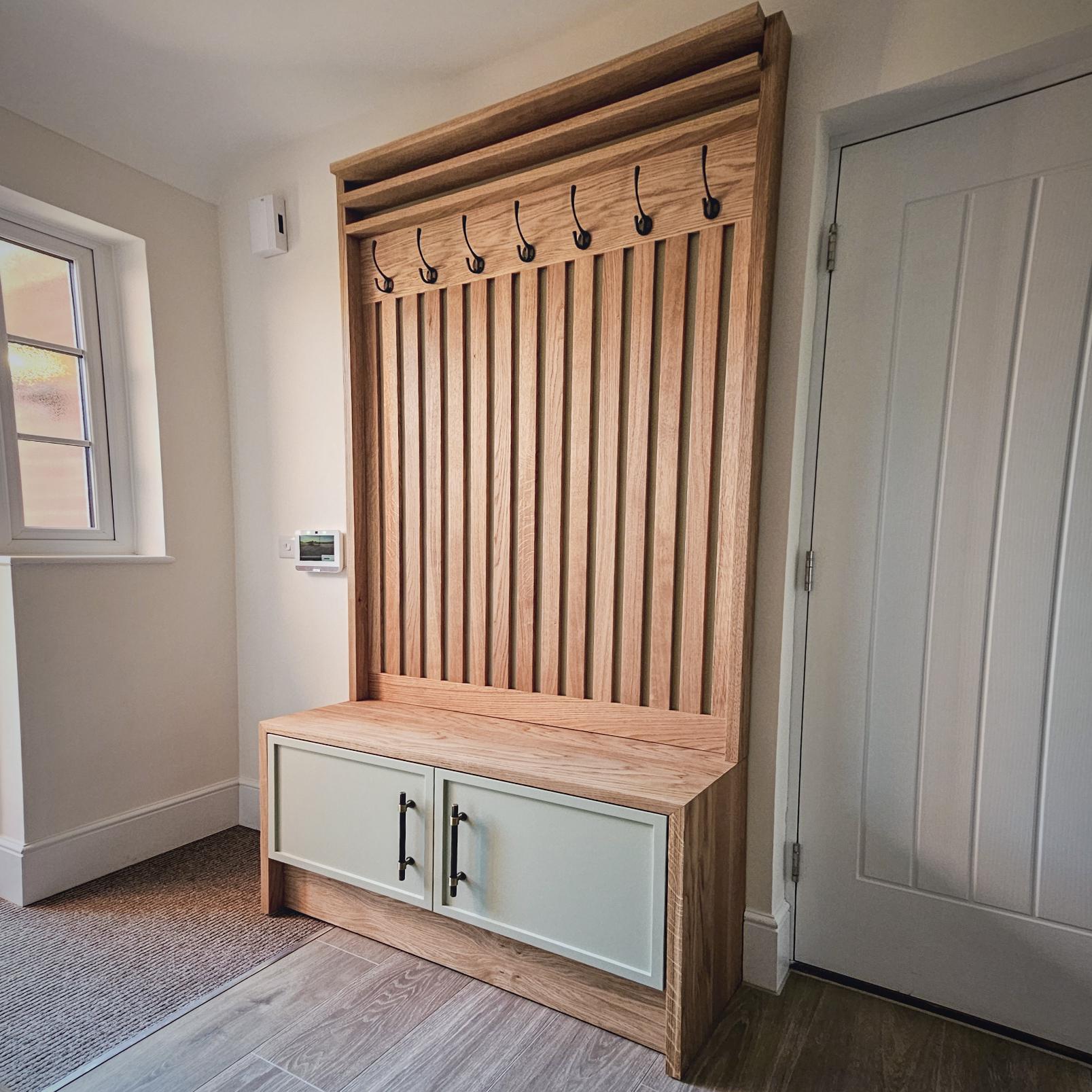 Handmade Solid Oak Entry Bench with Shoe Storage