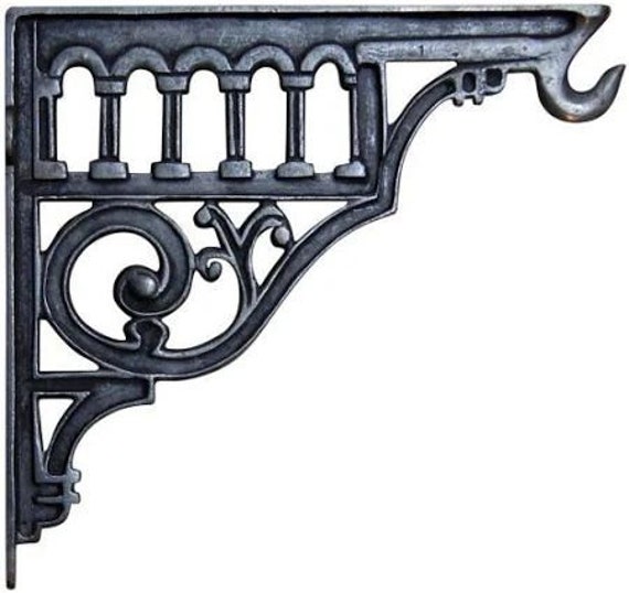 Decorative Hooks for Wall Ledges - Pair Cast Iron Shelf Brackets - Rustic Home and Garden Decor - So...