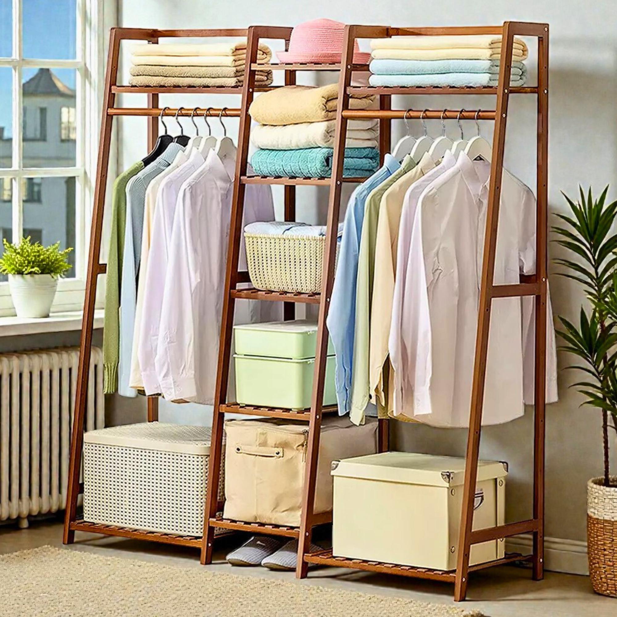 Upgrade your home organization with this stylish Bamboo Clothes Rail Rack, designed for modern livin...