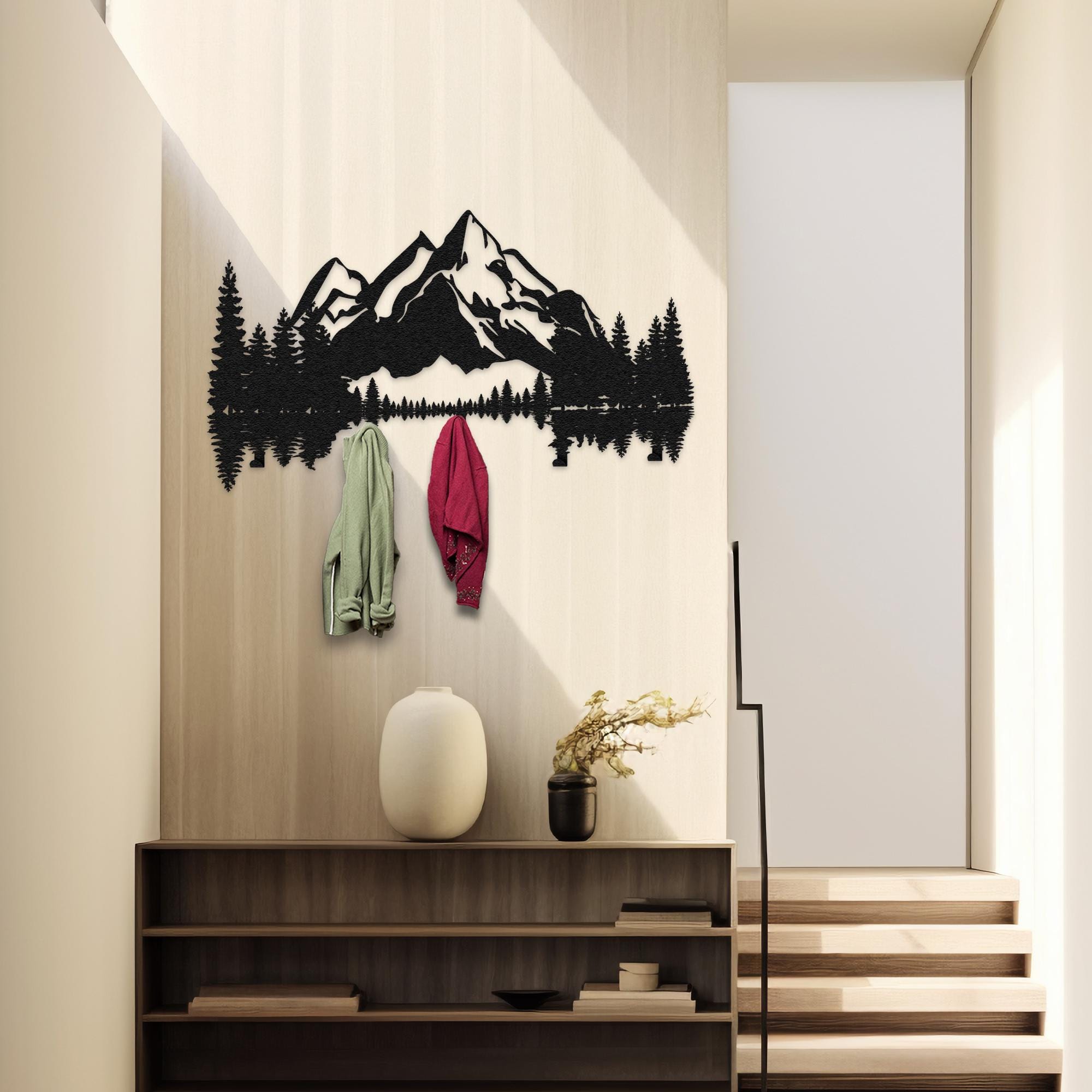 Mountain And Forest Wall Hook, Coat Rack, Wall Rack, Metal Wall Art...