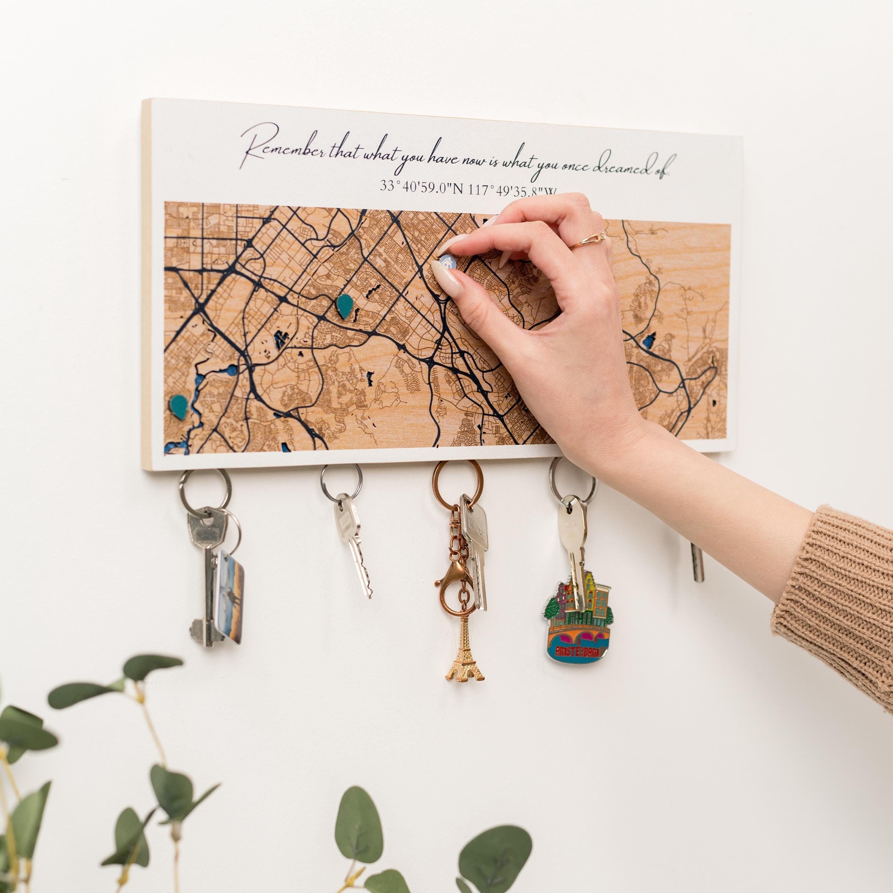 Elevate your entryway with our stylish Wall Key Holder, adorned with a detailed city map design. Cra...