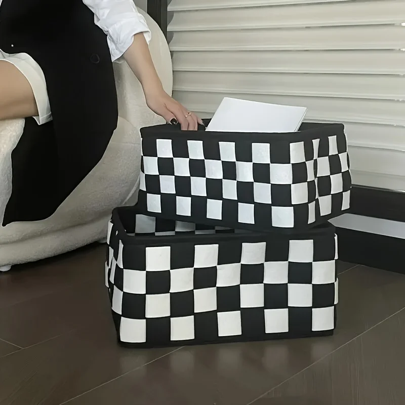 3 Black And White Checkered Large Capacity Woven Baskets, Suitable ...