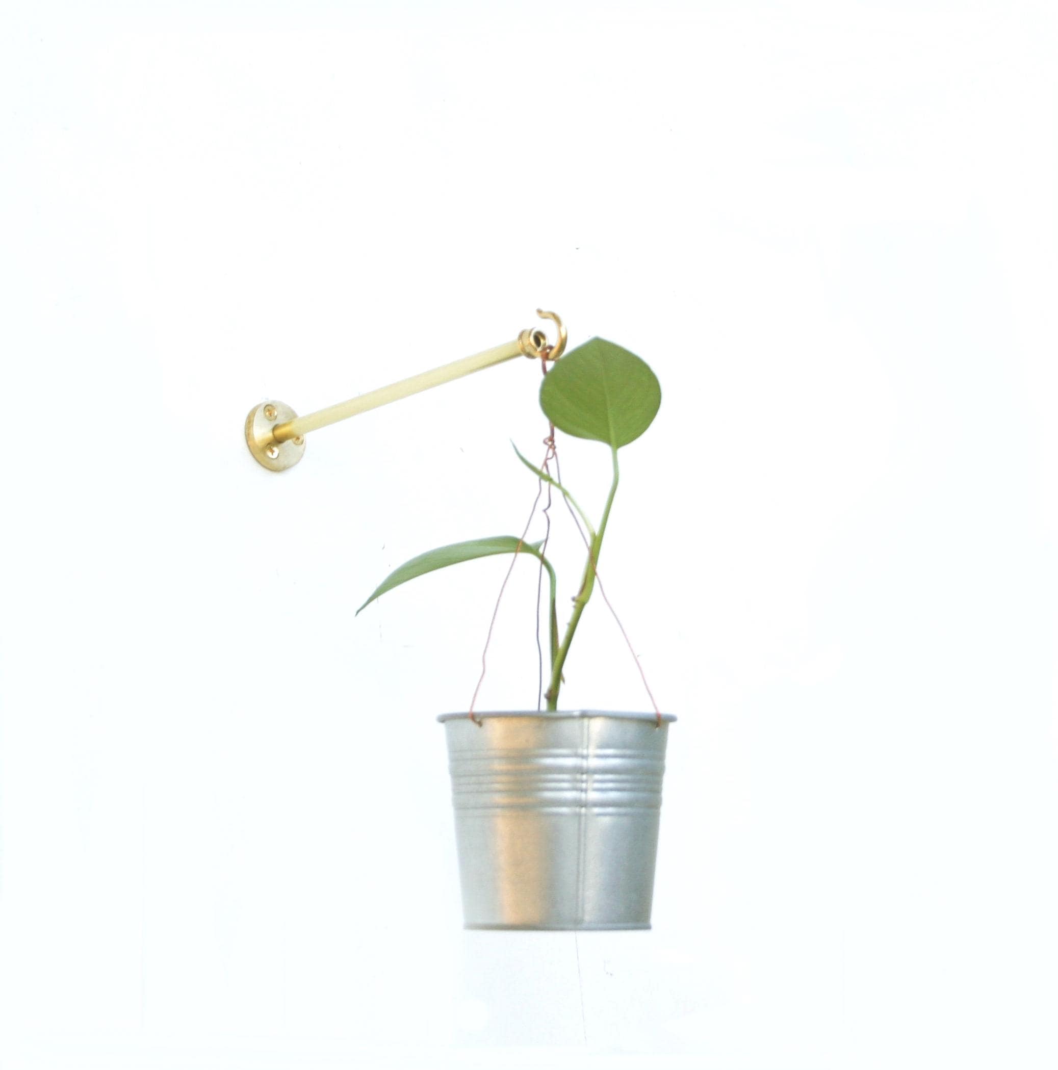 "Modern solid brass planter hanger. Material: Brass Total Extent length: 7\" Width: 1-1/2\...