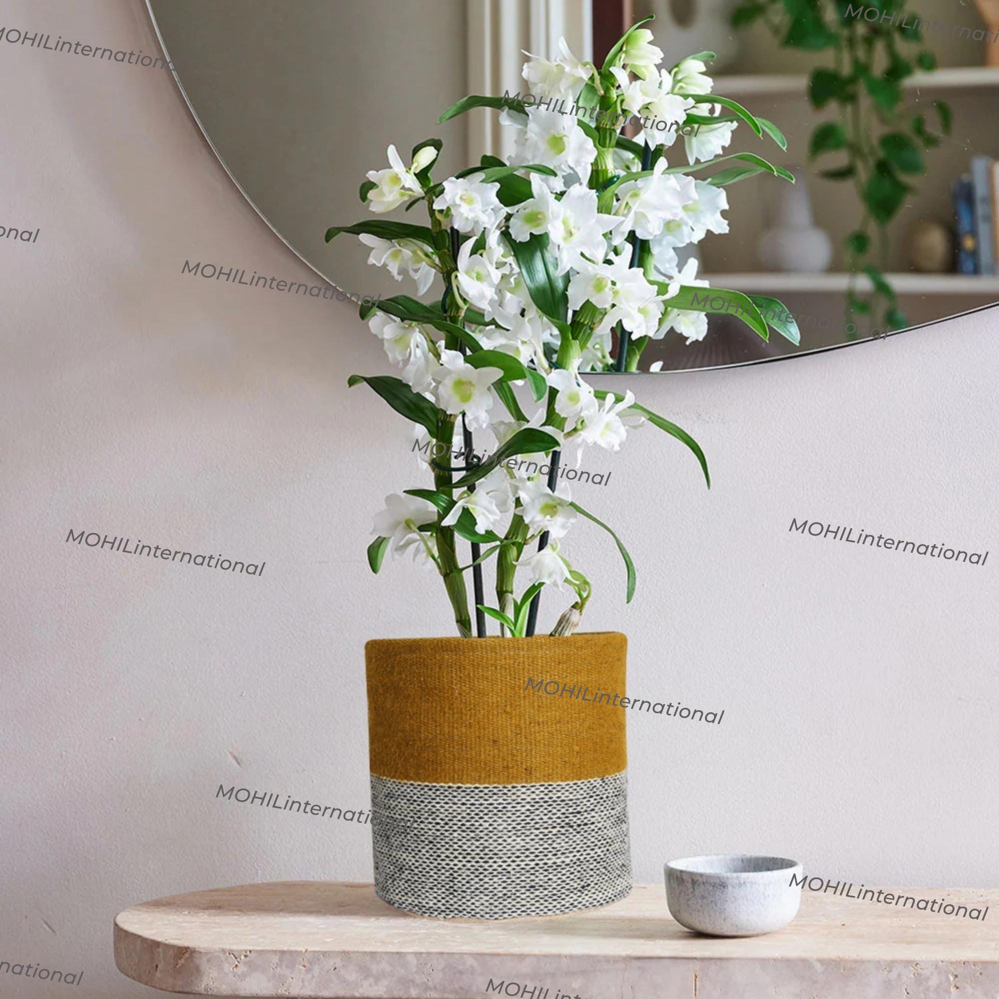 Yellow & Gray Jute Basket, Handmade Wool Jute Planter , Woven J...