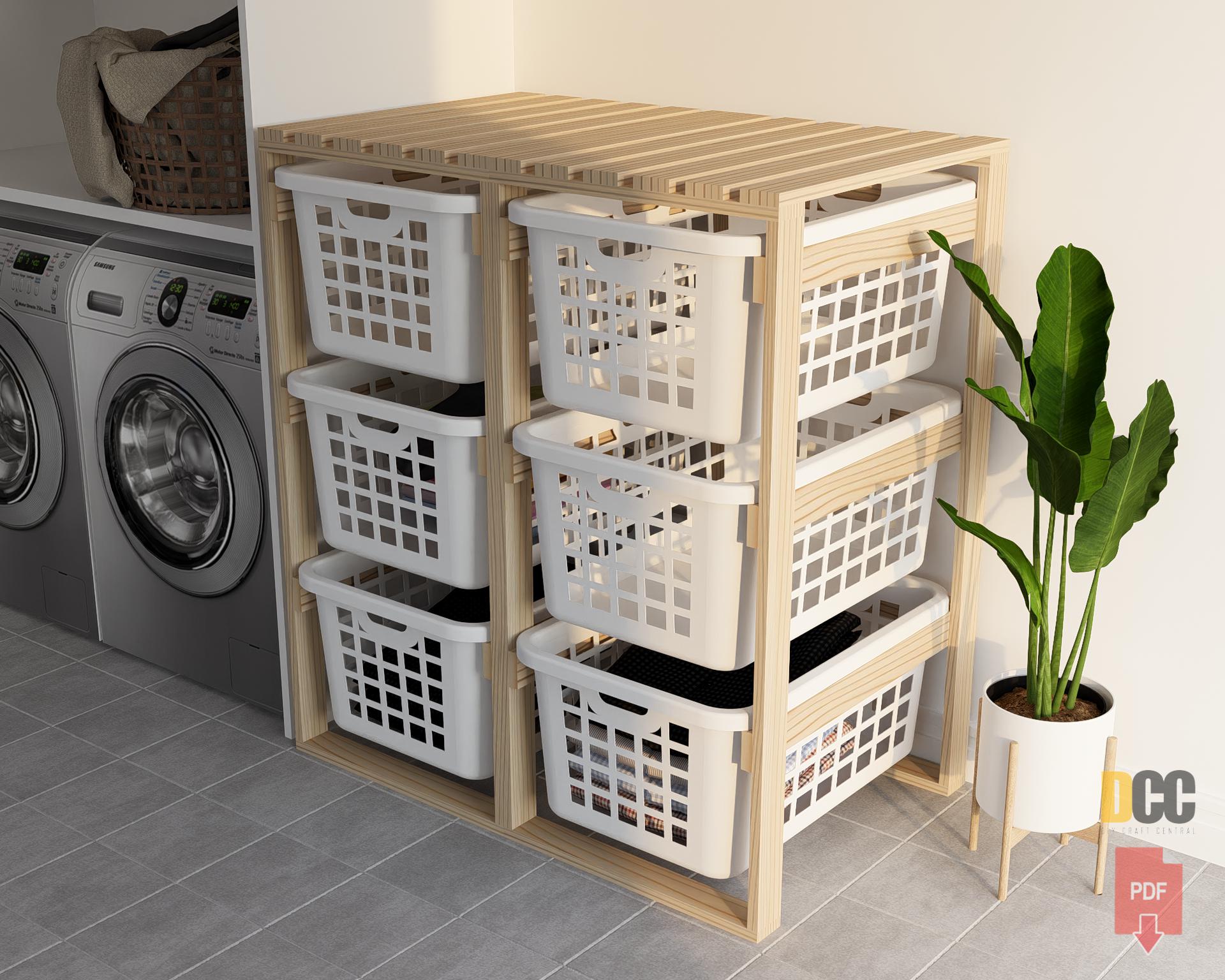 Basket rack end pull storage | Digital PDF Laundry organizer storag...
