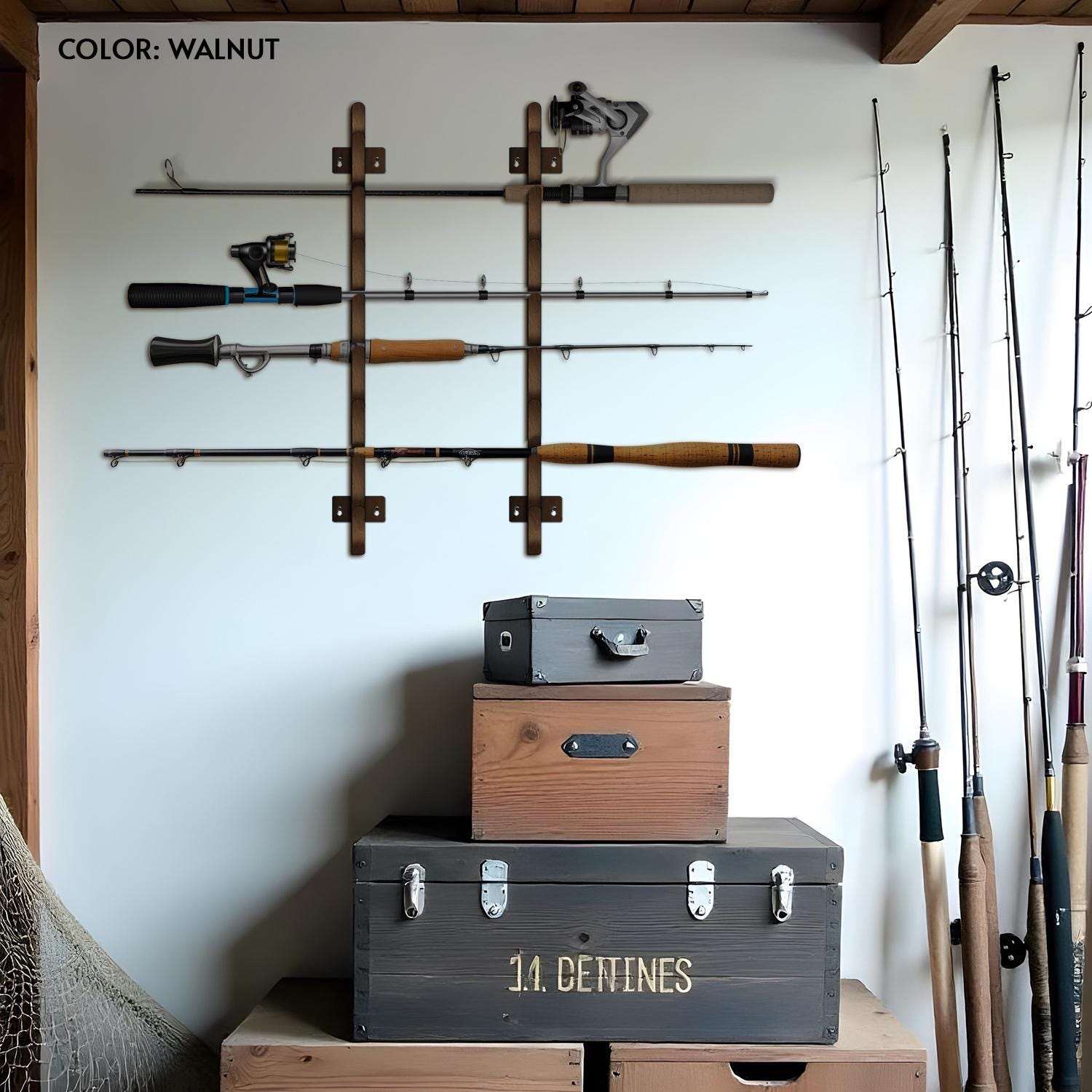 Elegant Wooden Fishing Rod Wall Rack - Stylish & Functional Storage Organize your fishing rods w...
