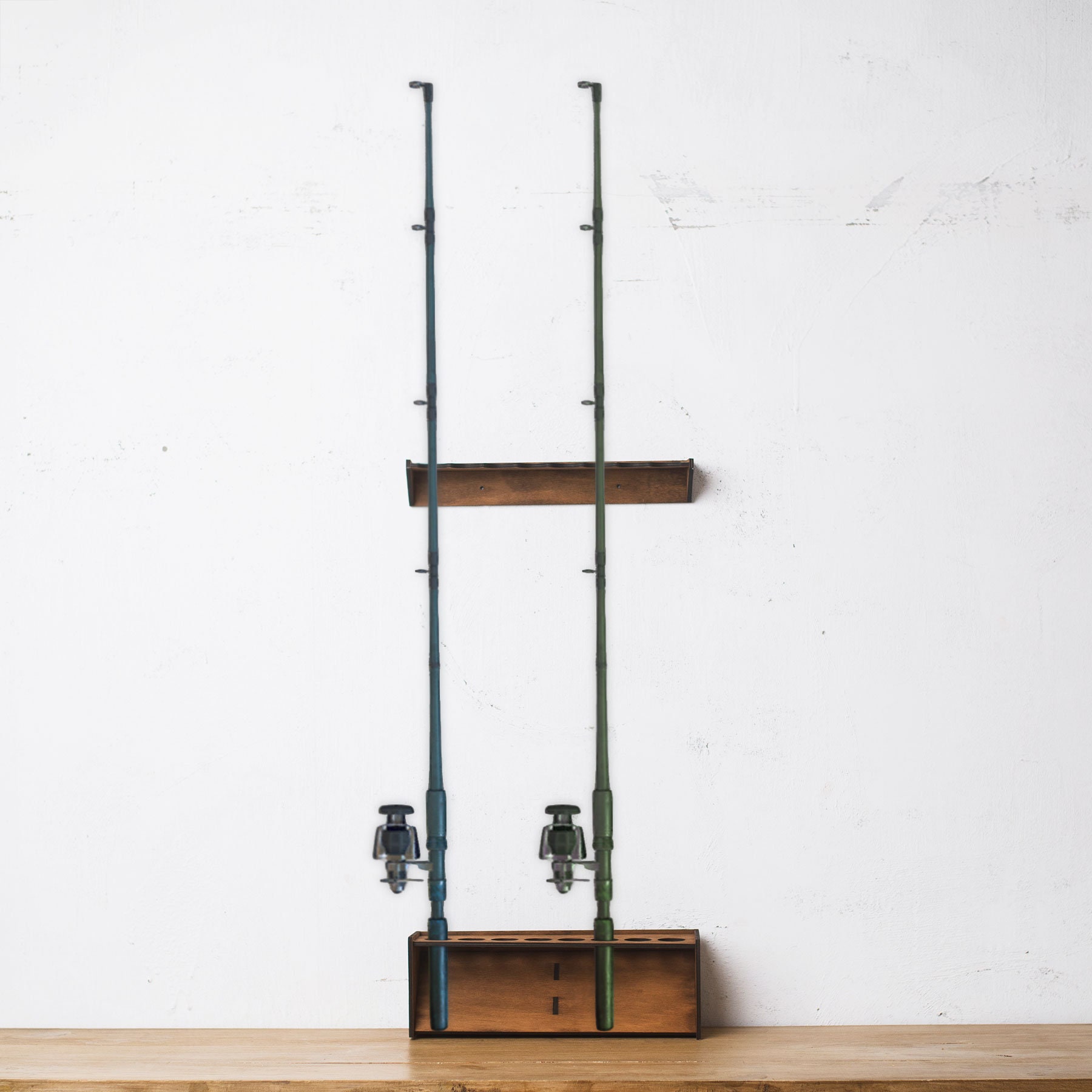 Wooden fishing rod holder, Fishing rod holder wall, Fishing rod wal...
