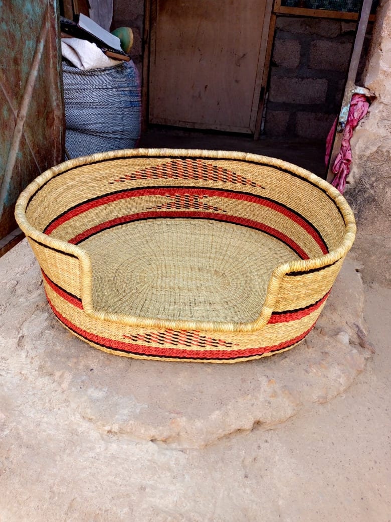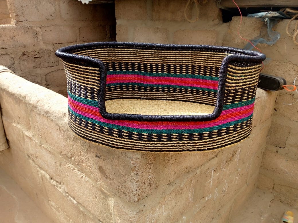 "Bolga handmade dog bed basket is intricately crafted using traditional techniques and material...