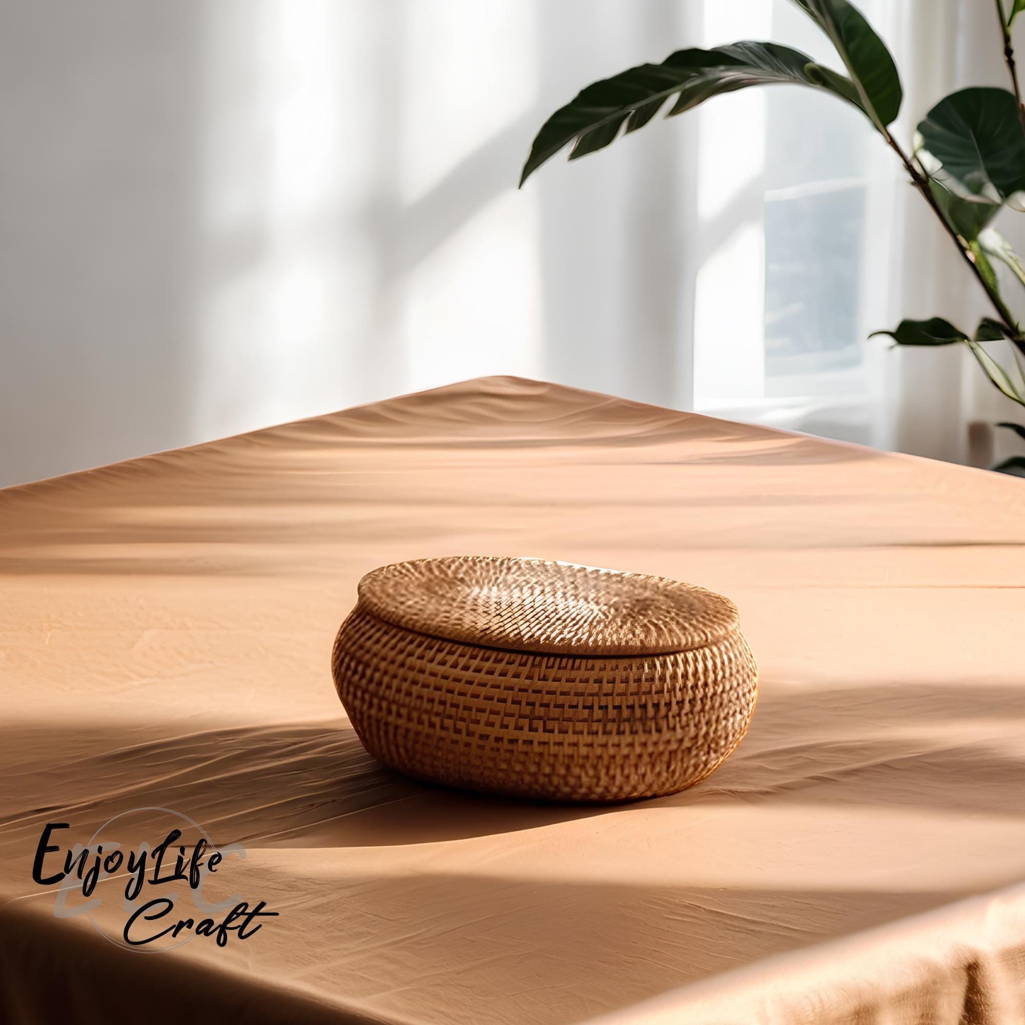 Rattan Woven Round Storage Basket With Cover,Rattan Jewellery Box,R...