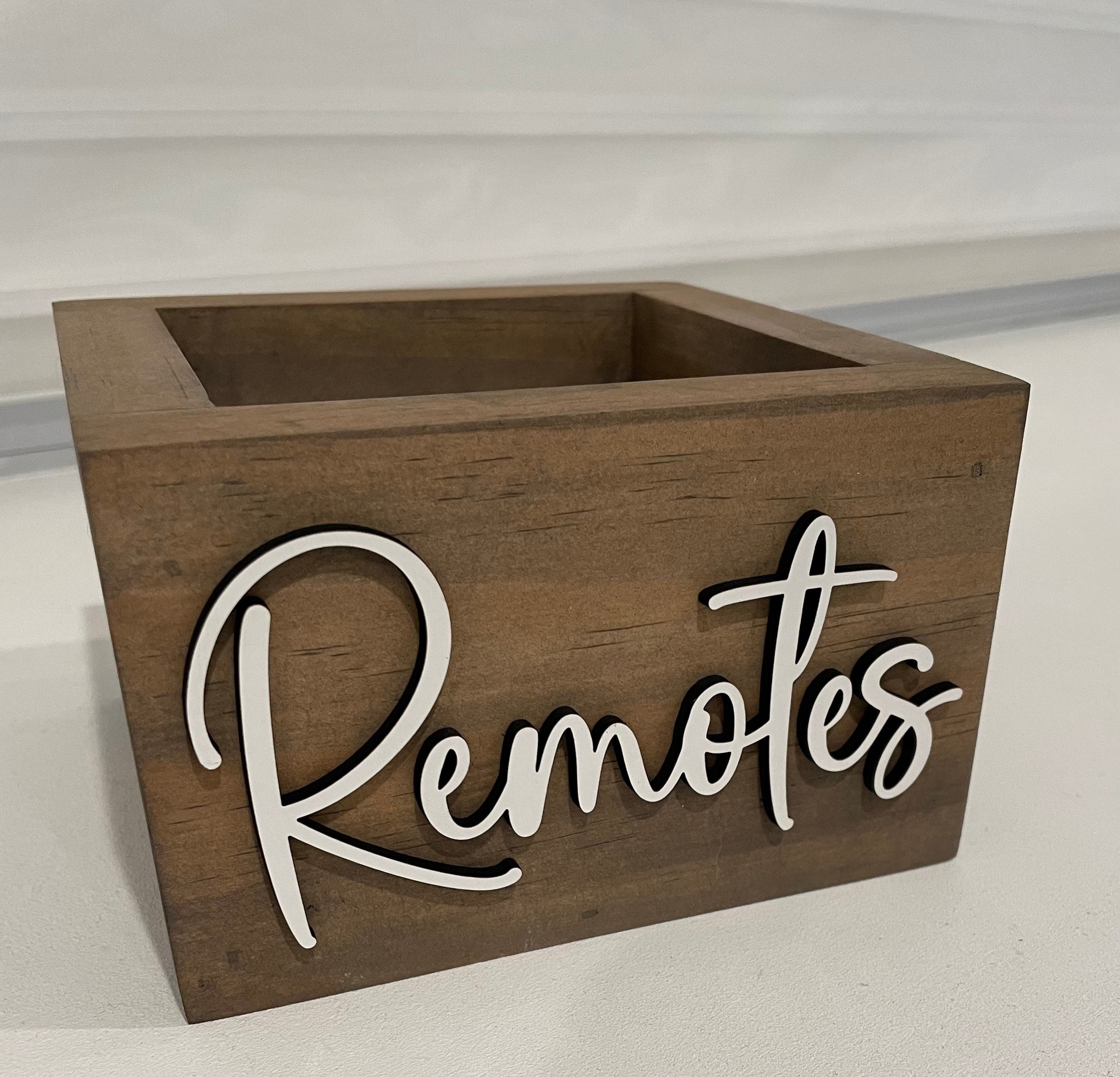 "Never lose your remotes again! Box comes with remotes wording as shown Made from clear pine wo...