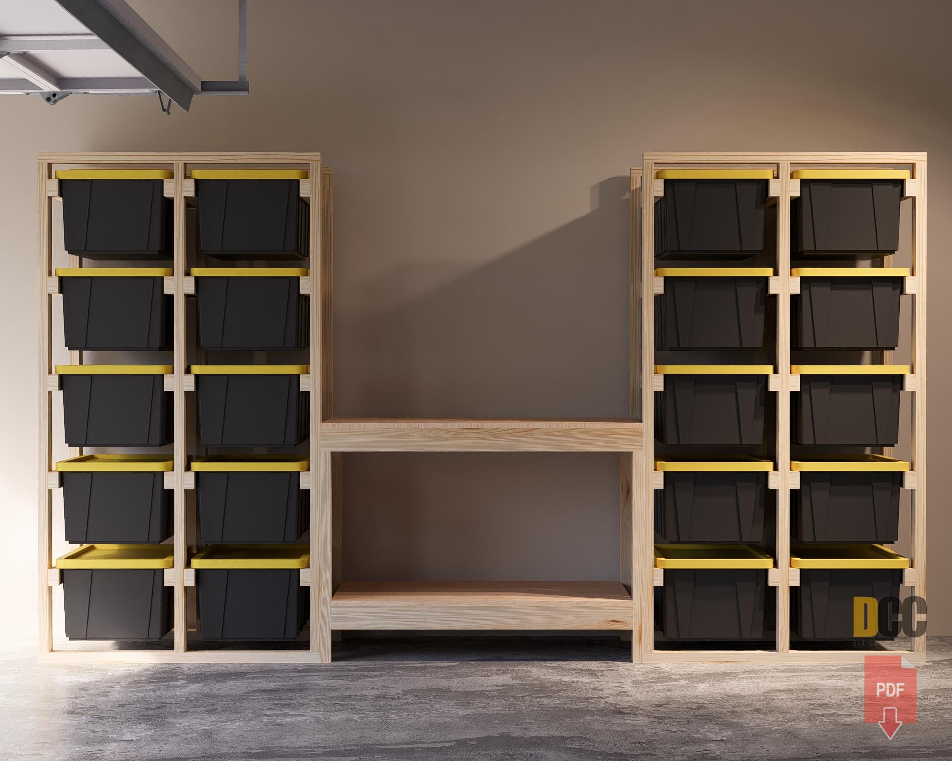 DIGITAL DOWNLOAD ONLY Tote Garage Shelves for 17 Gallon Tote Storage with 48x30.5'' Workbench Produc...
