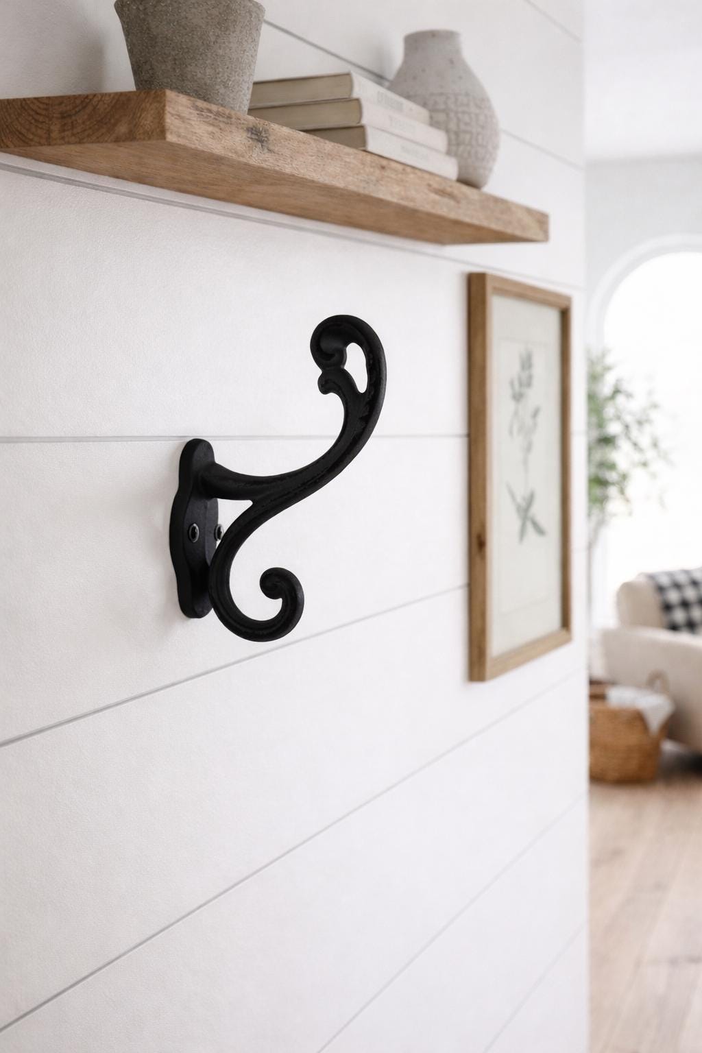 "Black Cast Iron Coat Hook, Rustic Farmhouse Wall Hook, Heavy ...