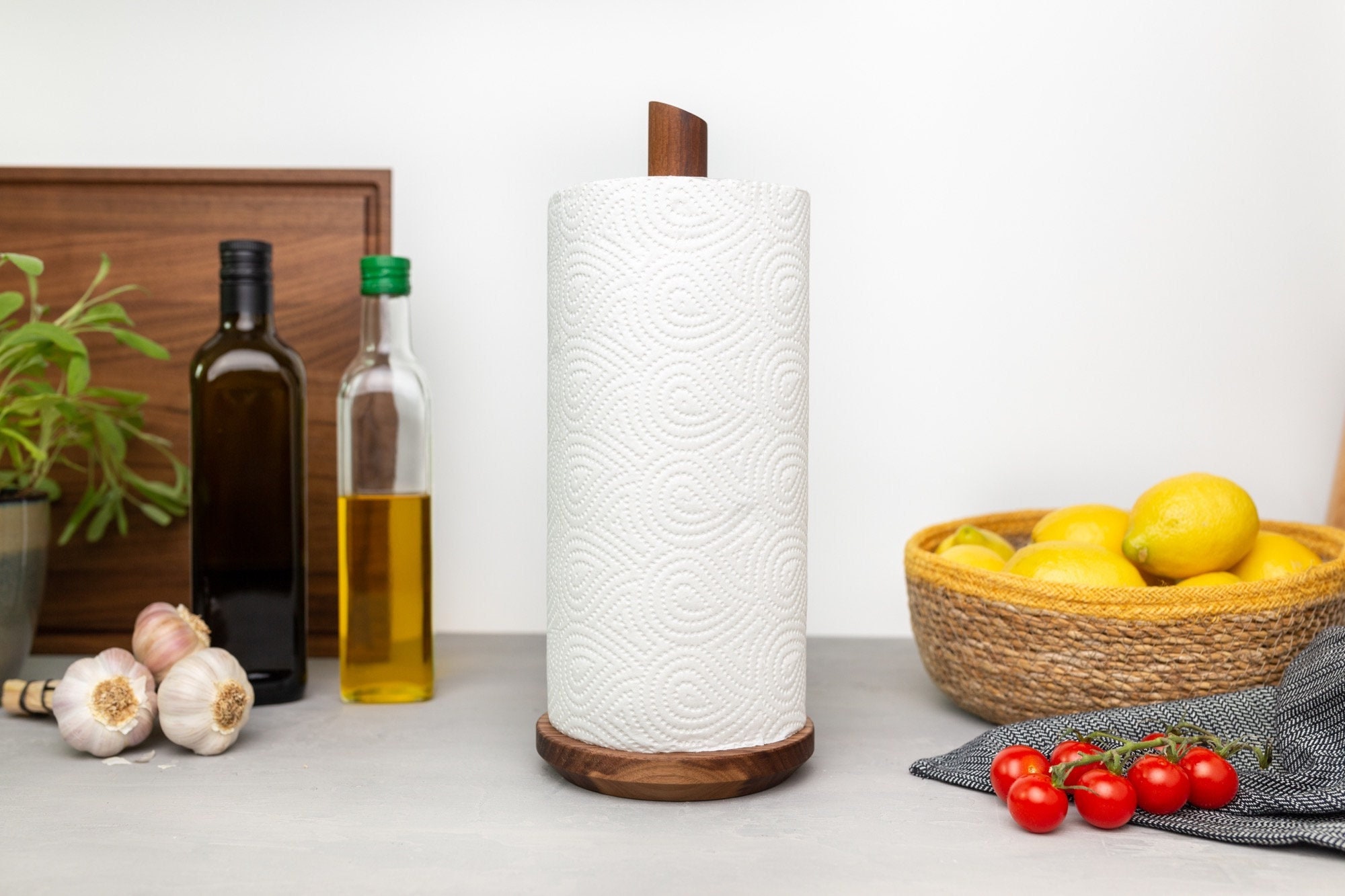 Our kitchen roll holder made of solid walnut wood is the perfect companion when cooking, baking or c...