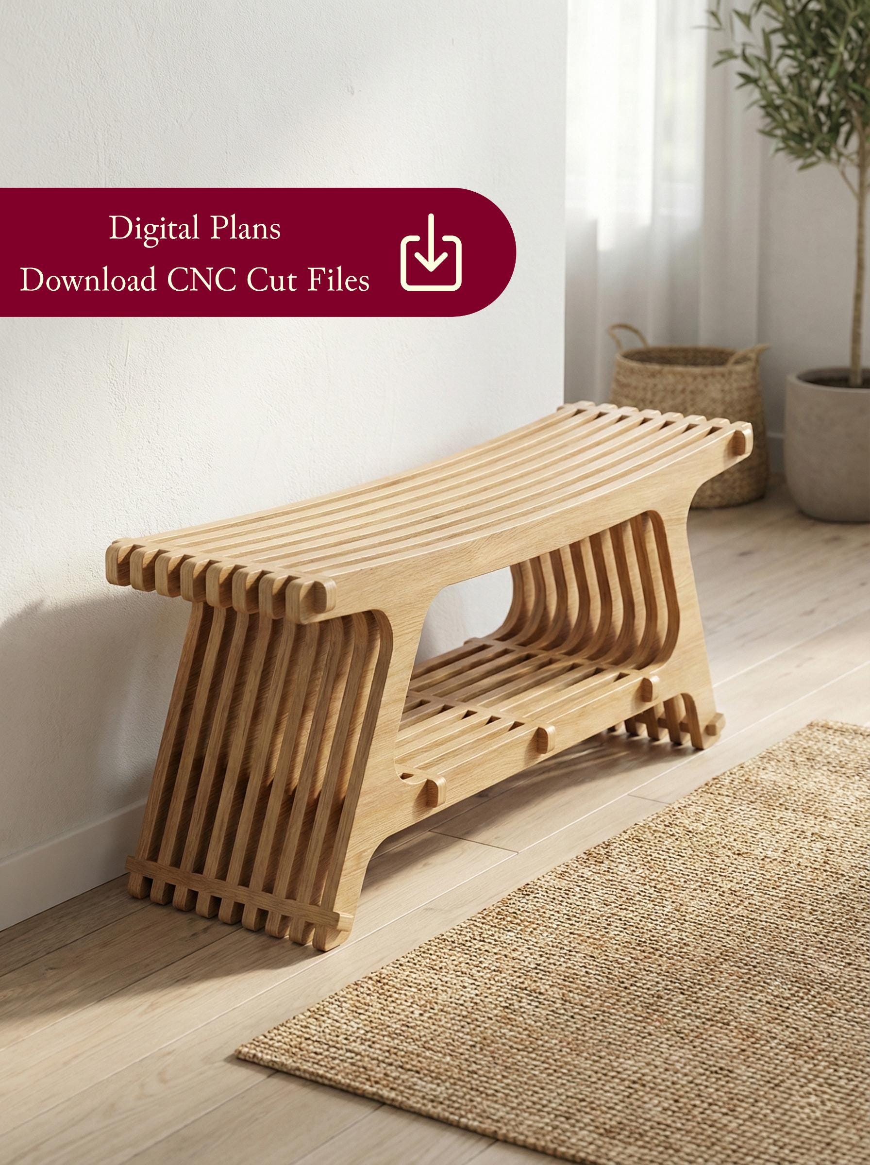Parametric Bench CNC Files - Entryway Shoe Rack Design - Modern Fur...
