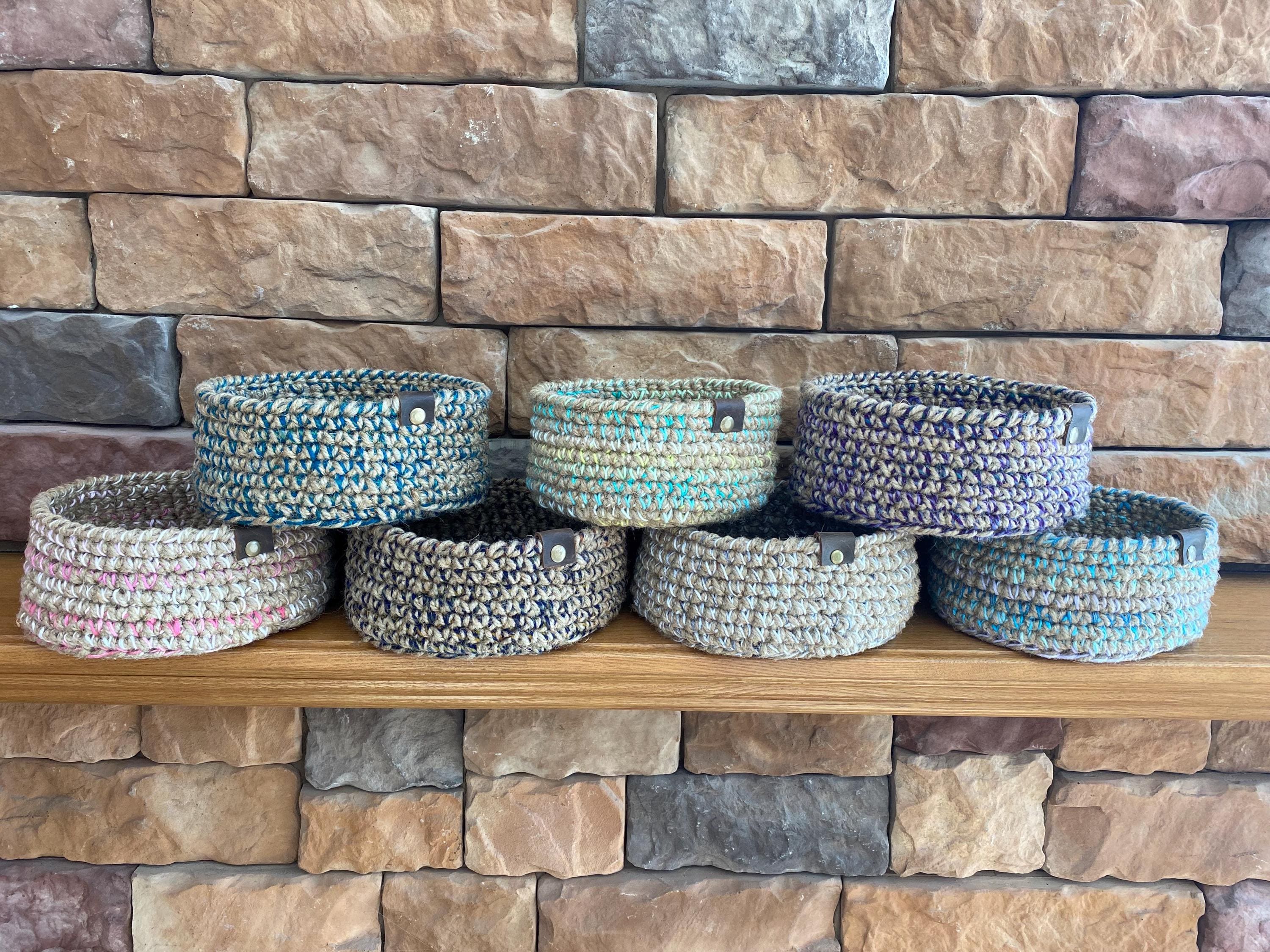 "The Gems of the dMichele Basket Co. Each basket is handmade using jute, cotton & acrylic t...
