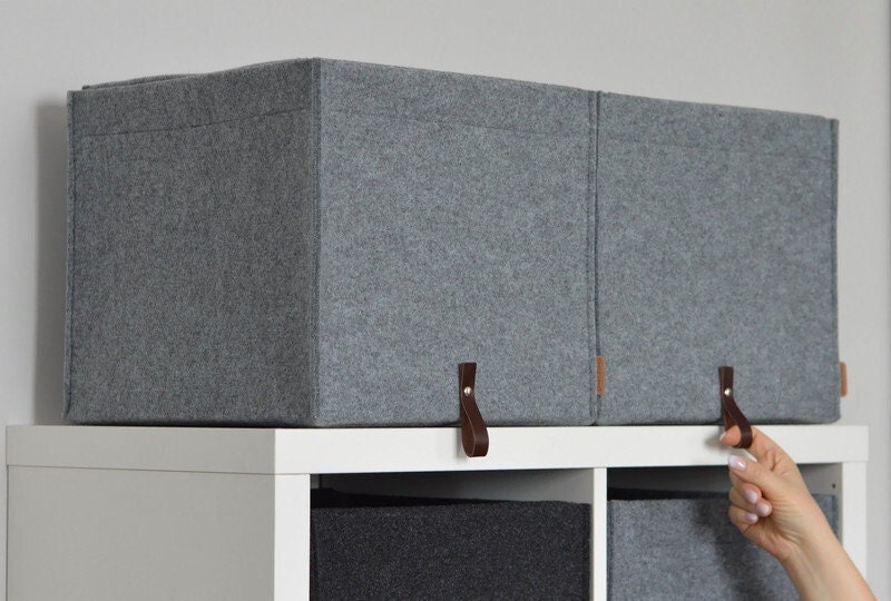Storage basket, high small gray felt storage bin, felt bin, basket ...