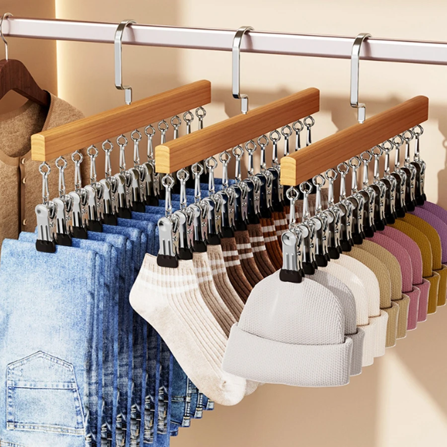 1PCS Solid Wooden Trouser Clip Home Closet Stainless Hat Skirt Storage Rotatable Multi-Clip Student ...