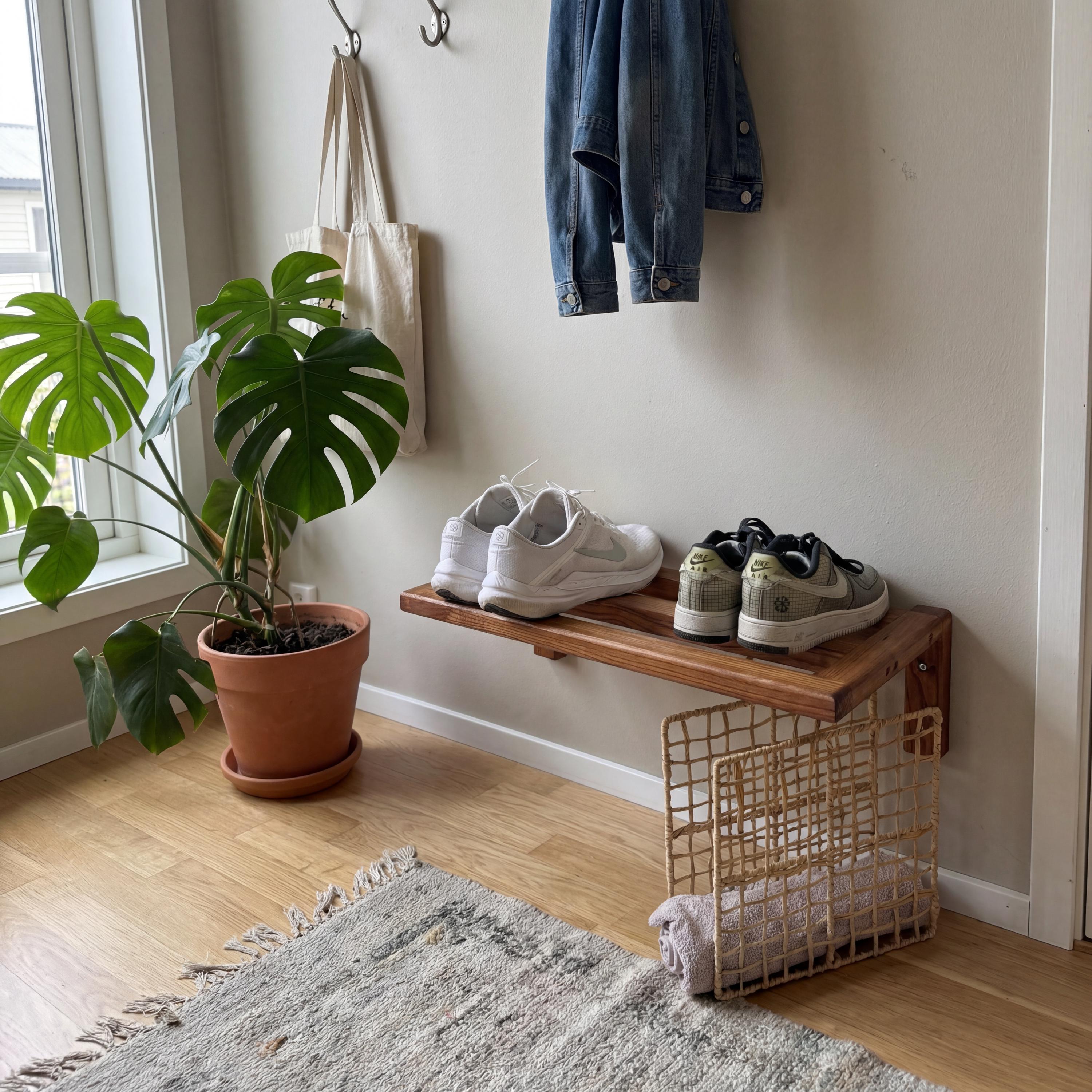 Handmade Solid Wood Floating Shoe Rack, Minimalist Entryway Shelf, ...