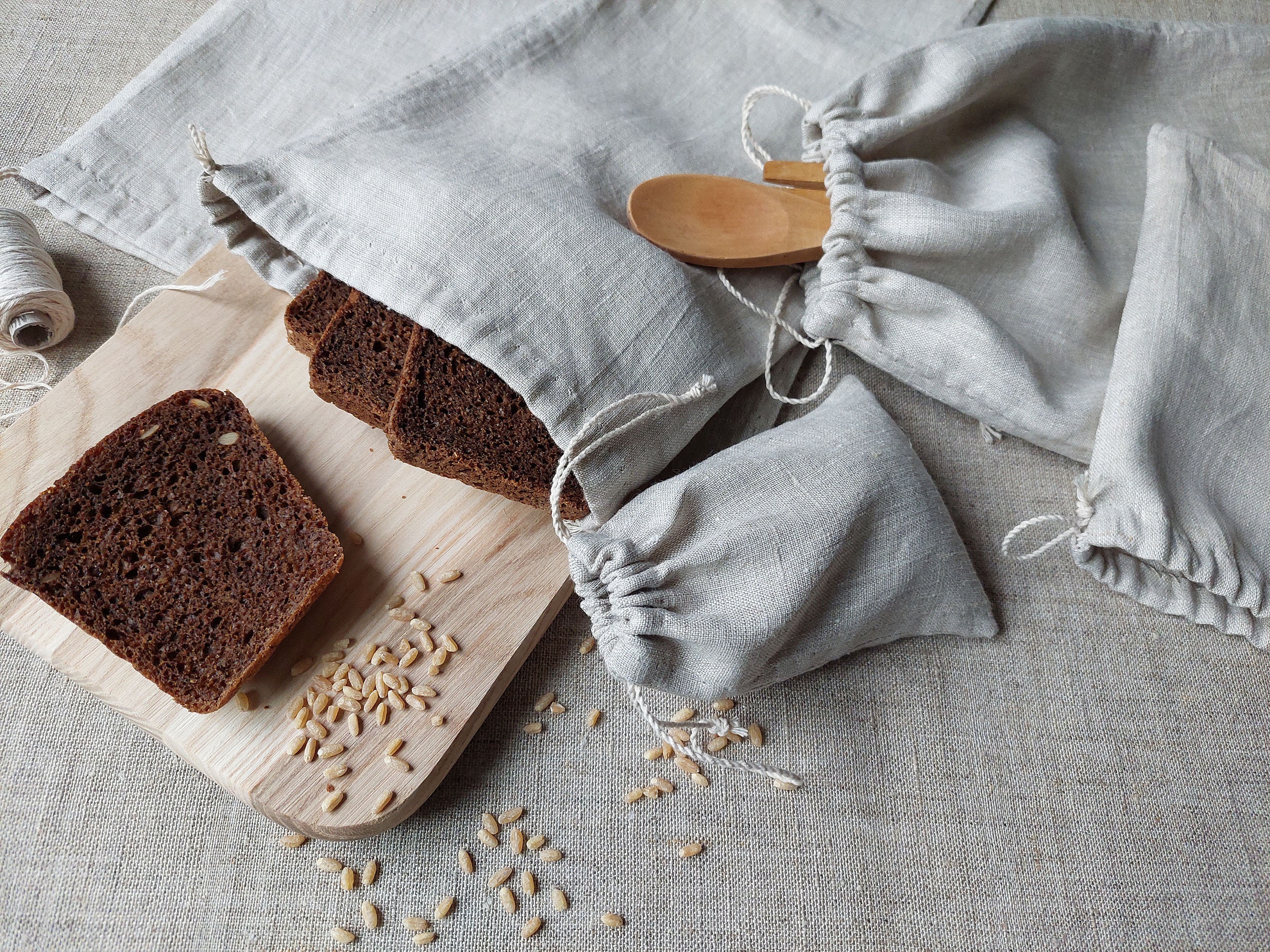 Linen bread bag, reusable bread bag, baguette bag, bread loaf bag, ...