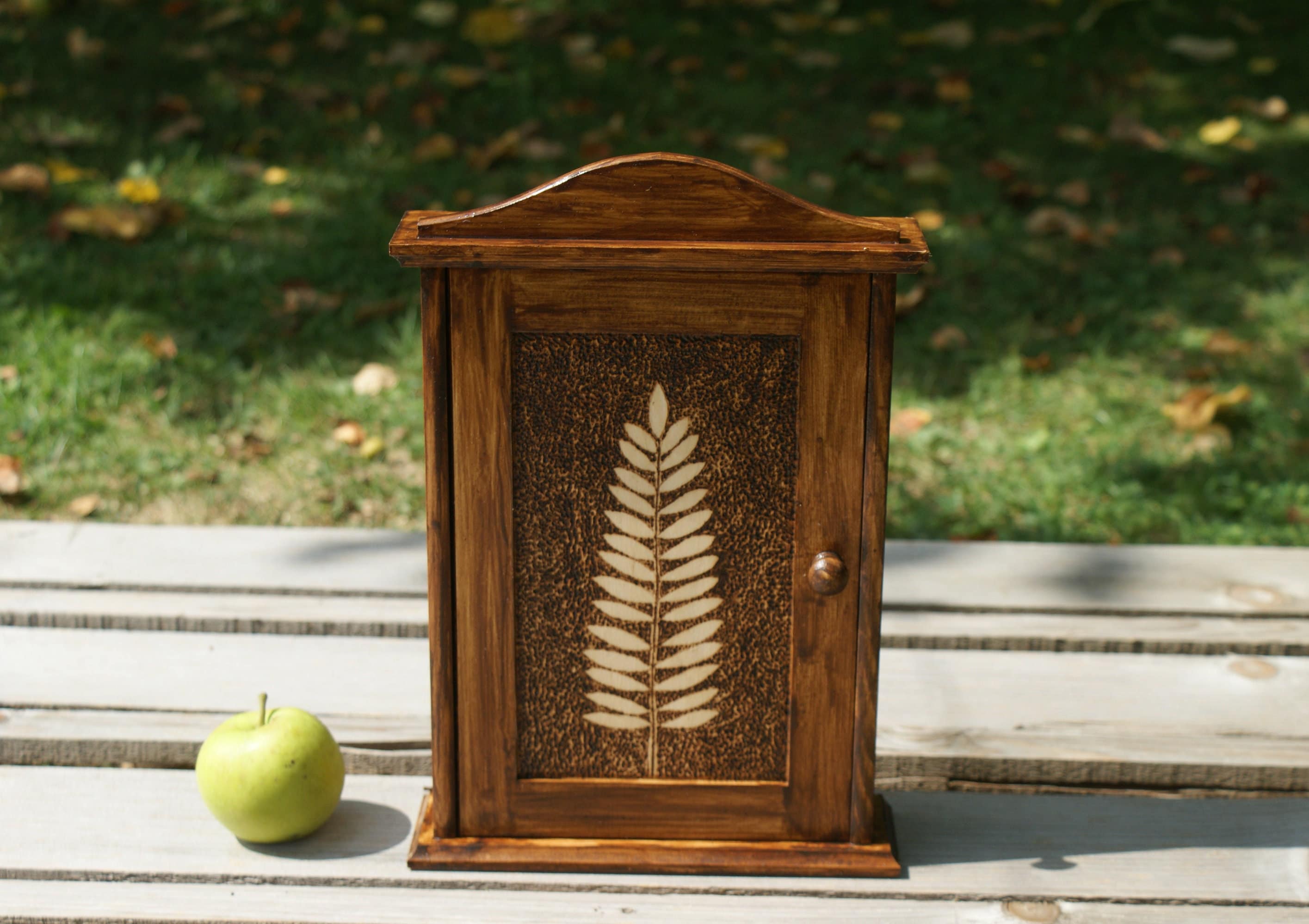 wooden rustic key box, wall key hanger, key box, rustic key organizer, leaf box, pyrography box, key...