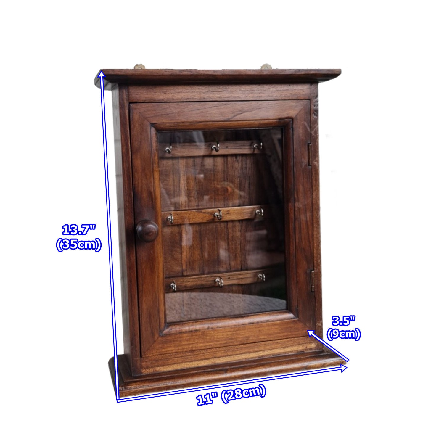 Key Box Holder Wall Cabinet Teak Key Wooden Wall Mounted 1 Door 9 H...