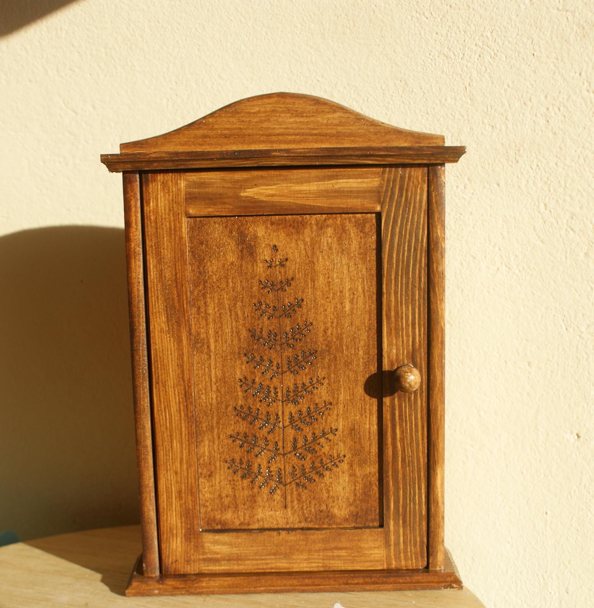 rustic key box, wooden key cabinet, cottagecore key box, wall key box, rustic box for keys, fern box...