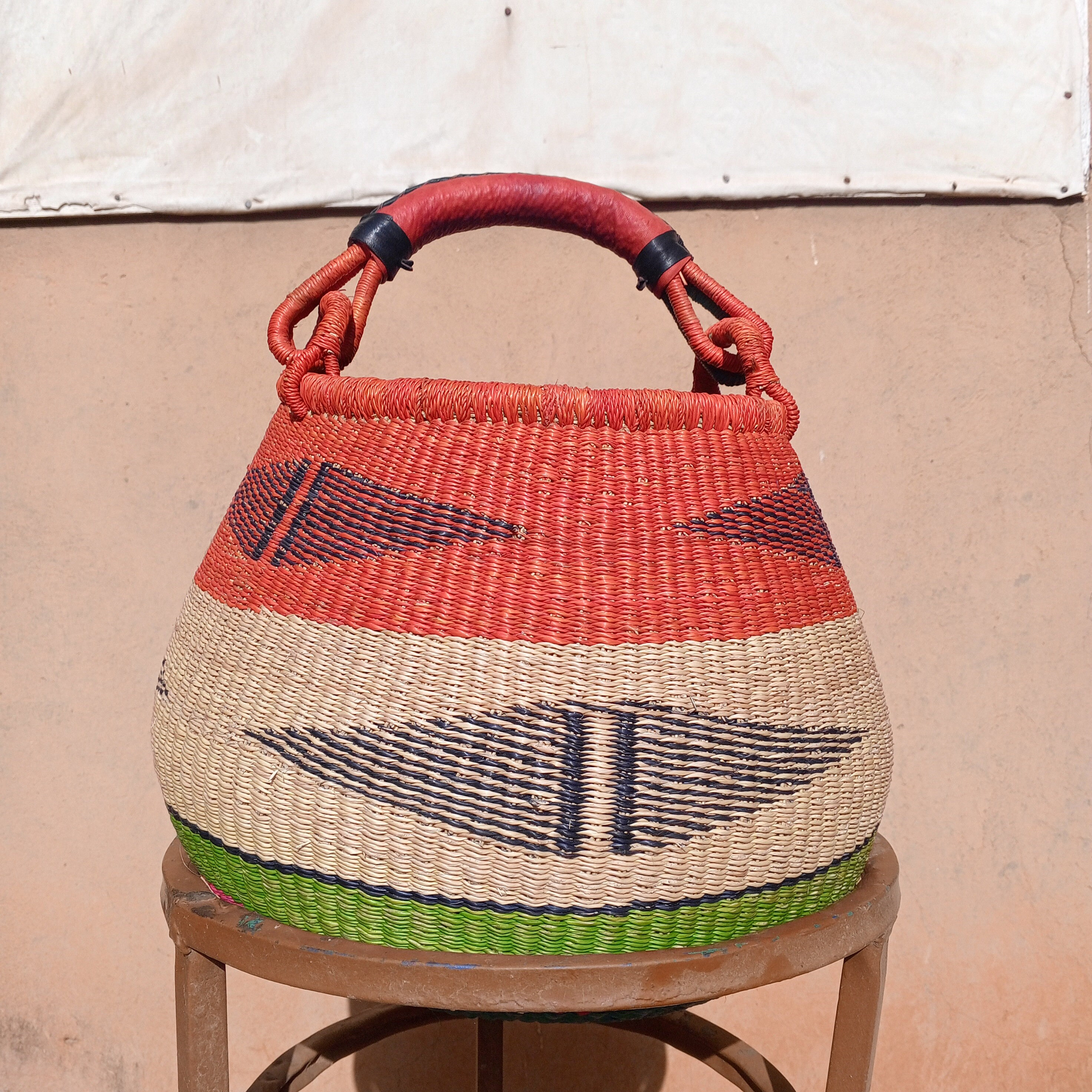 Authentic handmade basket, Bolga straw basket, straw pot basket, co...