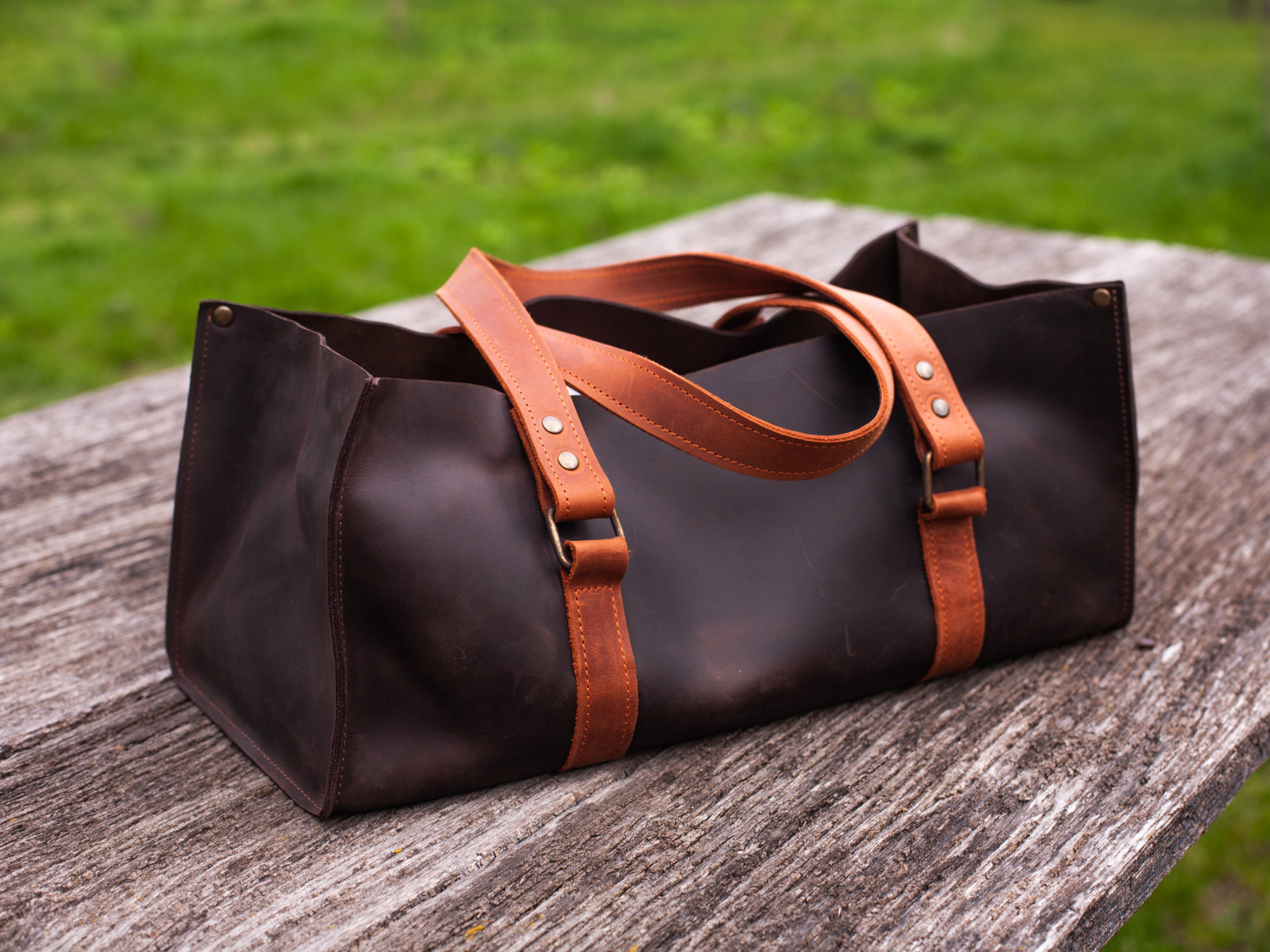 Large leather tool bag, Garden tool bag, Leather tool storage, Leat...
