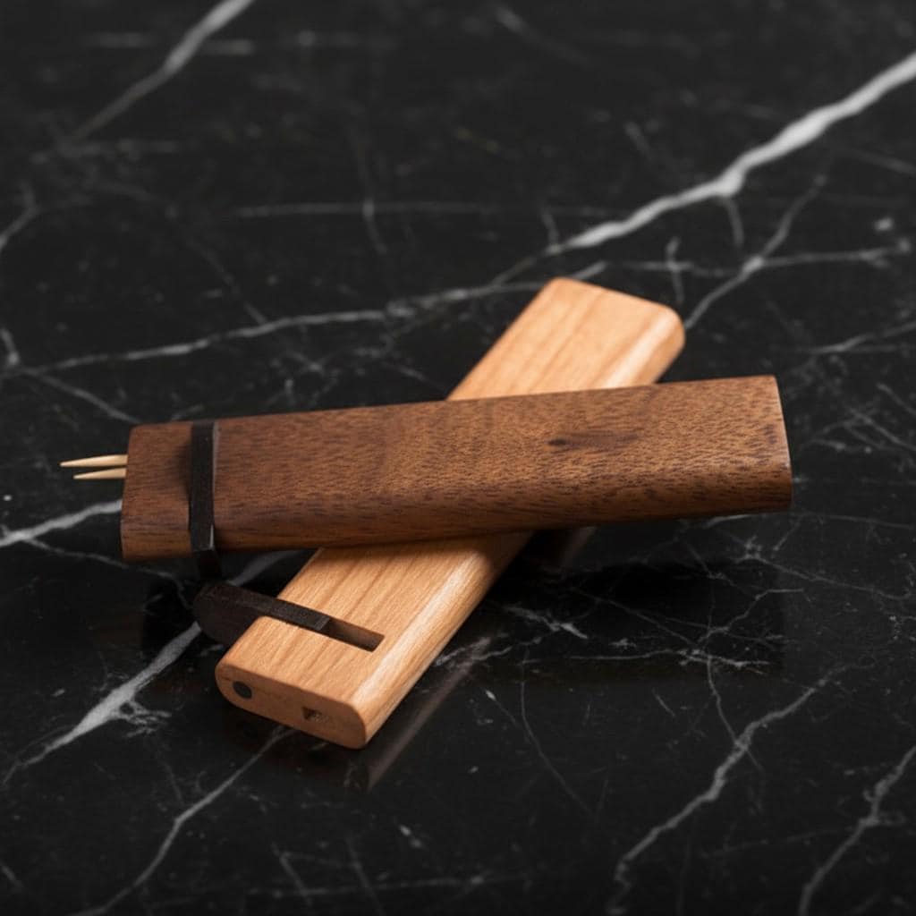 Wooden Toothpick Dispenser - Minimalist Walnut Holder with Slide Mechanism Bring natural elegance to...